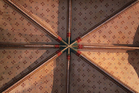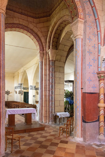 À l’intérieur, la nef et son bas-côté Nord sont couverts d’un plafond en plâtre, ils sont séparés par deux arcs en cintre brisé reposant sur des colonnes octogonales, créant un vaste espace ouvert.