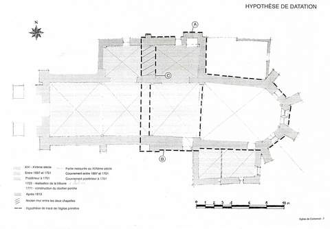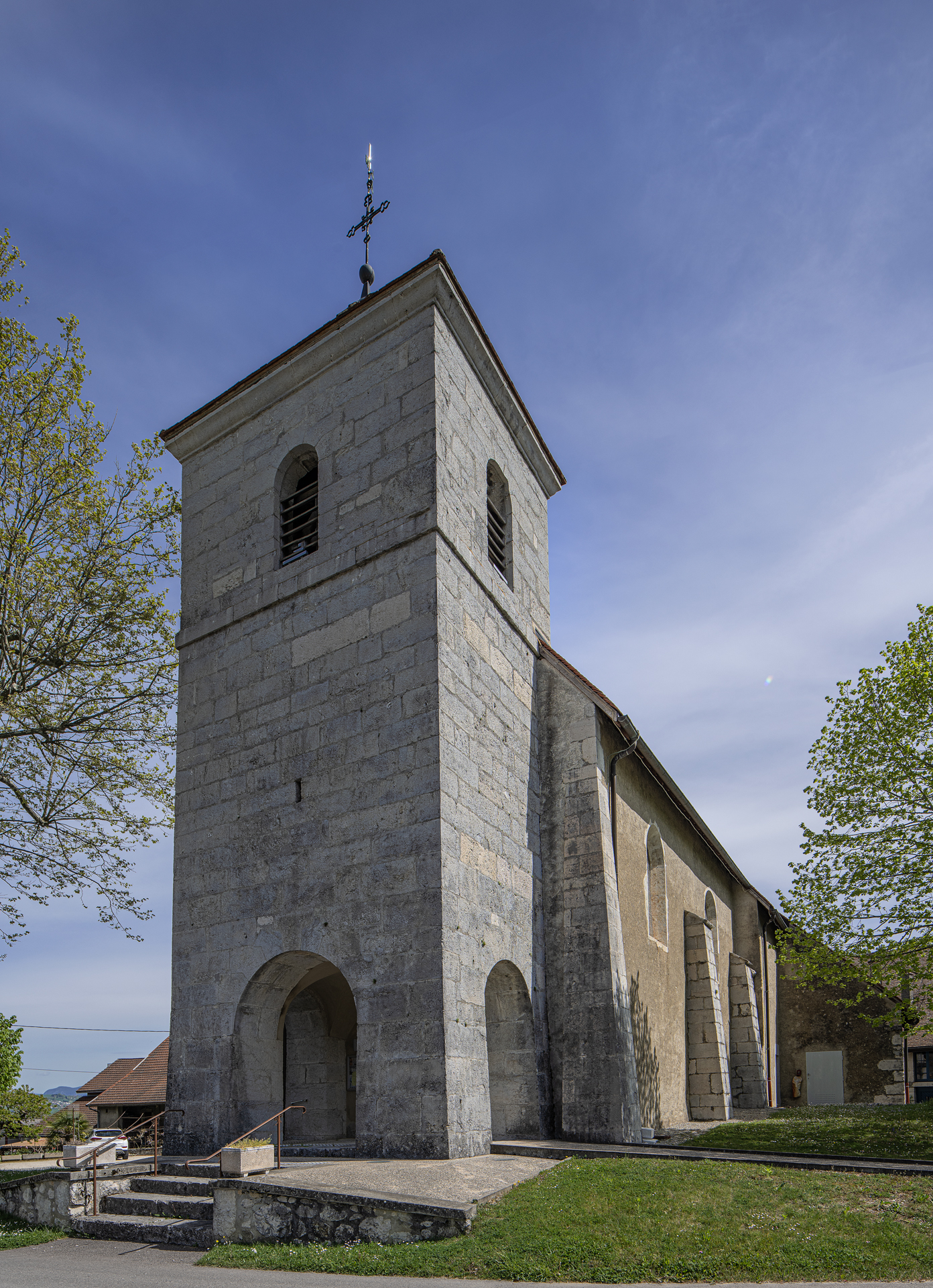 En 1697, le curé, Claude-François Récamier, fit reconstruire la nef par trois maçons d’Hotonnes en Valromey. Le « prix-fait » portait sur « les trois bonets de la voste de la nef, les trois arc deblaud [doubleaux] pour séparer les bonets, et les deux demy branches d’augive sur les murailles [arcs formerets], quatre arboutant, deux de chaque costé avec les deux angles sur le devant, en talus ». Il mentionnait aussi le portail « avec sa base et chapiteaux doriques, arquitraive [architrave] et autres assortiments pour le rendre en ordre dorique ». Ce prix-fait prévoyait encore les fenêtres de la nef et l’œil-de-bœuf ouvert au dessus du portail, ainsi que la sacristie à deux « bonets ». Par la suite, on rebâtit le clocher en façade en construisant aussi une tribune à balustres de pierre datée, par une inscription, de 1723. Au XIXe s., on reconstruisit la partie supérieure du clocher et on fit communiquer les deux chapelles latérales nord en réédifiant peut-être celle de l’est (v. 1830 ?).