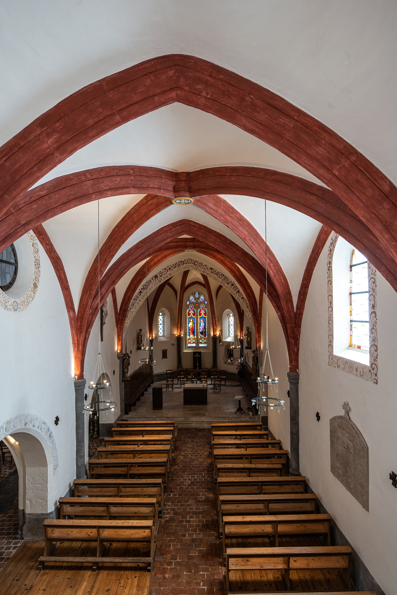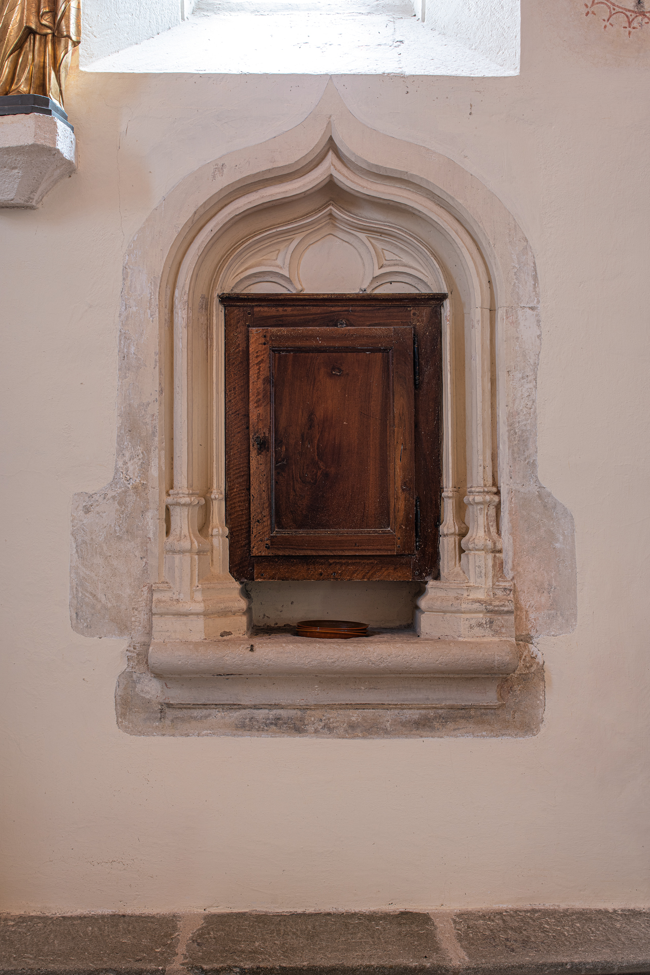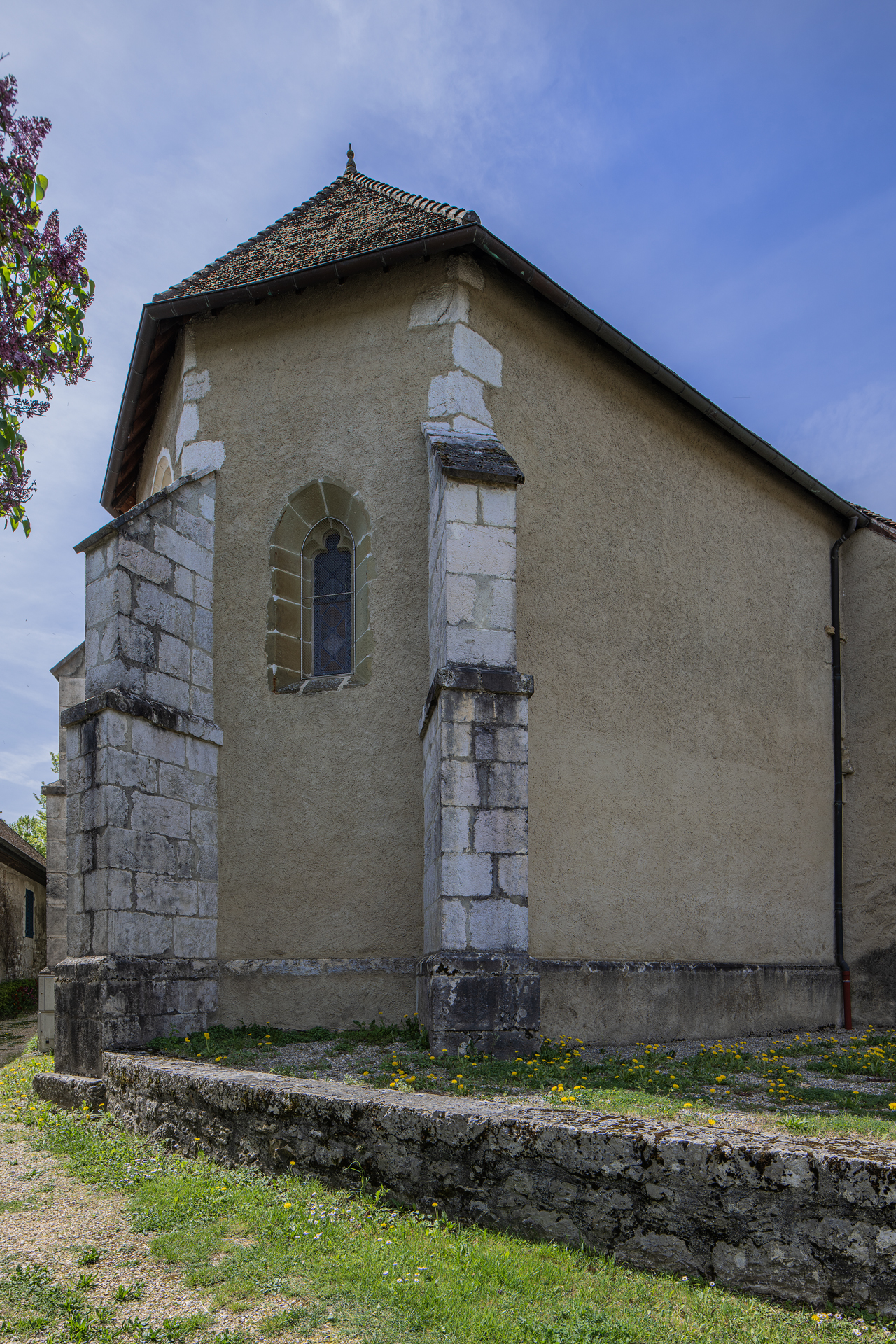 L’abside à cinq pans est voûtée sur une croisée à six branches d’ogives ; la clef porte un écusson frappé de la croix de Savoie. La fenêtre axiale est à deux formes et mouchettes flamboyantes (XVe s.), tandis que les fenêtres des pans coupés sont à une seule forme et beaucoup plus petites et étroites.