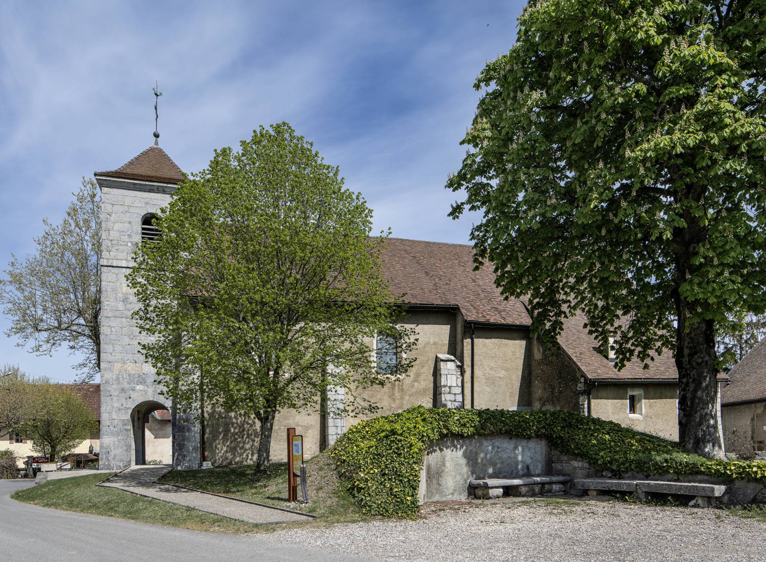 L’église Saint-Maurice est mentionnée dans le pouillé du diocèse de Genève du milieu du XIVe s. (vers 1345), mais elle devait être antérieure à cette date. L’évêque nommait directement le curé. Le chœur fut reconstruit à l’époque gothique, puis entre 1482 et 1581, cinq chapelles latérales furent édifiées : Saint-Claude du seigneur de Grex, Sainte-Apollonie des seigneurs de Silans, comtes de Montmayeur, Saint-Étienne des Morel, Saint-Jean-Baptiste des Guillot, entretenue à partir du XVIIe s. par la confrérie du Rosaire, et enfin Saint-Pierre, des Michel ou Michard, fondée par le prêtre Pierre Michaelis (Michard) en 1506.