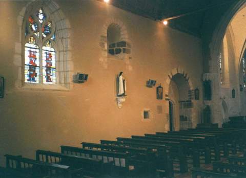 À l’intérieur de l’édifice, le regard du visiteur est attiré par les cinq baies du chœur qui conservent en partie leurs vitraux Renaissance, dédiés notamment à saint Denis, sainte Geneviève et sainte Barbe. Les travées du chœur sont couvertes de belles voûtes à clef pendante.