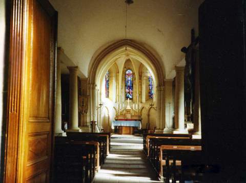 L’église de Cornay, très largement reconstruite aux XVIIIe et XIXe s., offre moins d ‘intérêt par son architecture que par sa situation remontant au moins au XIe s., qui a été partiellement arasée pour permettre l’établissement d’un cimetière, elle constitue en effet l’un des rares exemples français de motte ecclésiale. La chapelle castrale primitive a été fondée en 1211 par Eudes de Cornay et placée sous le patronage de l’abbé de Chéhery. En 1552, après la reconstruction du village pillé par les troupes de Charles Quint, elle fut érigée en église paroissiale et dédiée à saint Nicolas. Une chapelle fut alors greffée sur le flanc nord du chœur (actuelle sacristie). La nef fut reconstruite et agrandie à partir de 1719, comme l’indique une inscription gravée sur le mur ouest. D’une grande simplicité, elle est formée d’un vaisseau central, dont la voûte en berceau repose sur des colonnes doriques, et de deux bas-côtés plafonnés. Le chœur, de deux travées voûtées sur croisées d’ogives, qui était encore celui de la première chapelle, menaçait ruine au milieu du XIXe s. Il fut restauré en 1854-1855 par un architecte de Vouziers, Martin, qui reconstruisit l’abside à l’identique et éleva un clocher porche néo-gothique à l’ouest. Les anciennes fondations du chœur ont été dégagées à une époque indéterminée – peut-être lors de la reconstruction du château détruit par les Ligueurs à la fin du XVIe s. et réimplanté au nord-est de l’église -, tandis que la motte est conservée du côté occidental. Un pèlerinage suivi d’un chemin de croix a lieu le 14 septembre, jour de la fête de l’Exaltation de la Croix. Pour la réfection de la toiture en ardoise, la Sauvegarde de l’Art Français a accordé à cette petite commune de moins de 100 habitants une aide de 50 000 F en 1994.