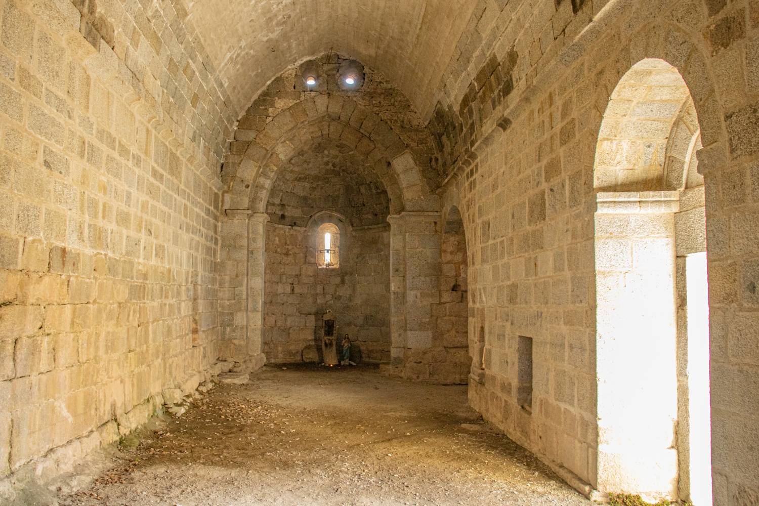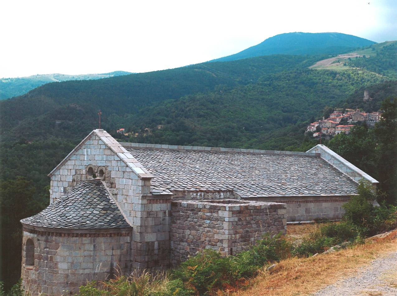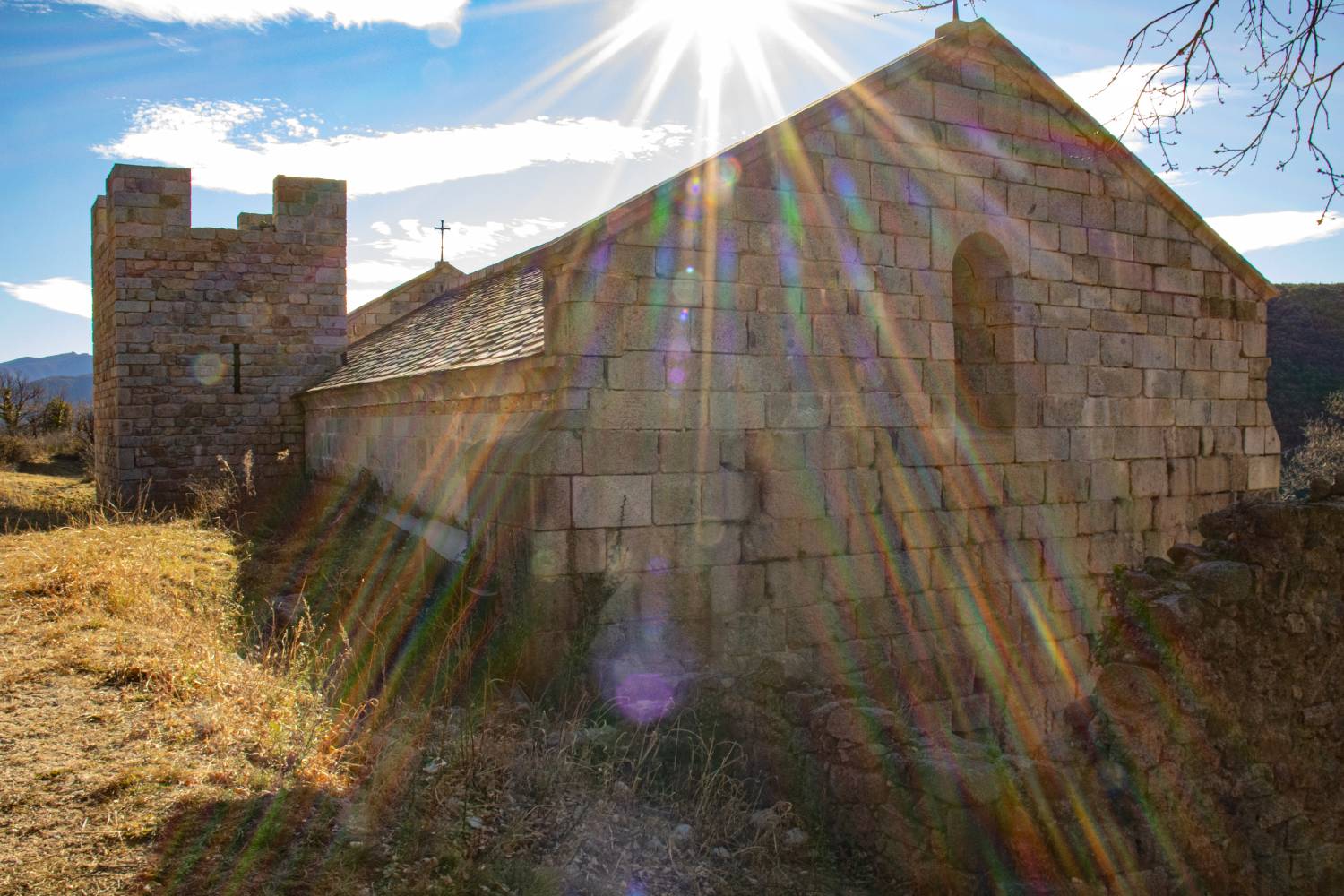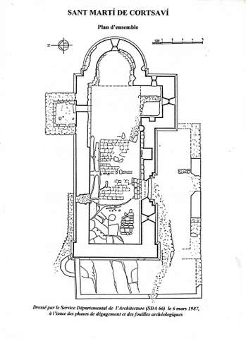 Consacrée en 1158, l’église romane de Saint-Martin de Corsavy est aujourd’hui ruinée. Ce fut pourtant un bel édifice de 22 m de long qui, bien que situé à un quart d’heure de marche du village, servit longtemps d’église paroissiale. Les parements de la nef unique sont en pierres de granit bien taillées. La voûte en berceau brisé, également en pierres de taille, existait encore en partie il y a une soixantaine d’années. Il n’en reste plus actuellement que les amorces. Deux oculi surmontent l’arc triomphal, également en berceau brisé, qui donne accès à une abside saillante voûtée en cul-de-four. Un mini-cloître protégeait l’église au sud. On y accédait par une belle porte en plein cintre, récemment dégagée du murage qui la défigurait.