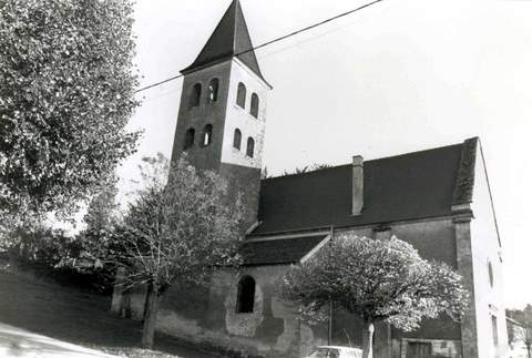 Si la région autour de Cluny et de Mâcon est particulièrement riche en églises et chapelles romanes, elle ne possède que peu d’édifices élevés aux XVIIème et XVIIIème s. Seul le mobilier fut alors renouvelé et nous transmet un reflet de l’art de cette époque dans la région. C’est dire l’importance des rares exemples de construction qui nous sont parvenus. La Sauvegarde de l’Art Français a participé ces dernières années aux travaux effectués sur deux monuments datant du XVIIIème s. : Allerey-sur-Saône, reconstruit de 1714 à 1716 (Cahier 6, 1993, p. 49) et Étrigny de 1769 à 1774 (Cahier 7, 1994, p. 100-101). Plus modeste, l’église Saint-Maurice de Cortambert a été élevée de 1784 à 1788. L’édifice précédent, qui remontait peut-être à 1236, date de la première mention de la paroisse dans les archives de Cluny, était à la fin du XVIIIème s. vétuste et trop petite, ainsi que nous l’apprend la requête présentée par Dom Talmeuf à l’Intendant de Bourgogne le 25 octobre 1783. L’église actuelle comprend une nef unique de 14,25 m de long sur 7,20 m de large qui communique par quatre marches avec un chœur rectangulaire, plus étroit, de 6,80 m sur 4,45 m. Sur le flanc nord s’ouvrent une chapelle et le clocher. Une sacristie a été ajoutée au sud. L’ensemble est harmonieux dans sa simplicité. Une belle porte à la mouluration classique, surmontée d’un oculus, s’ouvre dans la façade ouest. Les murs extérieurs sont scandés par des pilastres peu saillants. À l’intérieur, les murs séparant la nef du chœur ont gardé deux autels du XVIIIème s. dont les retables à colonnes torses conservent leurs statues en bois polychrome représentant la Vierge et saint Maurice, patron de l’église. Le clocher, haut de 16,80 m, garde l’aspect d’un clocher roman. Dans sa partie supérieure, il est percé sur ses quatre faces d’ouvertures en plein cintre, réparties deux à deux, sur deux étages. En 1992, la Sauvegarde de l’Arc Français a subventionné pour 26 000 F la réfection des enduit s du clocher et de la chapelle.