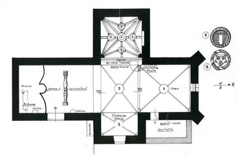 La chapelle de Notre-Dame, fondée au XVIe s. par un personnage qui n’a pas encore été identifié, constitue, par les thèmes et la qualité de ses sculptures, la partie la plus remarquable de l’édifice. La voûte est à croisée d’ogives avec liernes et tiercerons et cinq clefs pendantes. Au centre, Dieu le Père est figuré sous les traits d’un pape barbu couronné d’une tiare, portant le globe et bénissant ; figuration qui se répand à la fin du XVe siècle. Les symboles des quatre évangélistes ornent les autres clefs : l’ange, le lion, le taureau et l’aigle. Autour de chaque clef de voûte est sculptée une couronne de feuillages, semblable à celles que l’on peut voir sur nos manuscrits du XVIe siècle. Sur les quatre culots figurent saint Pierre, saint Jacques avec son bâton de pèlerin, des animaux et des végétaux, ainsi qu’un ange à mi-corps portant sur un écu les lettres MISSA. Á côté de celui-ci, deux personnages auréolés (saints ou plutôt anges sans ailes ?) élèvent un calice. Ainsi que le souligne France Félix-Kerbrat, ce double rappel de l’Eucharistie a une signification théologique très forte. Le protestantisme ne se répand cependant en Rouergue et en particulier à Saint-Affrique qu’à partir de 1561. Au-dessus de l’arc de l’entrée de la chapelle, deux personnages, plus finement sculptés, tiennent, cette fois-ci, les armes de France, le blason étant figuré à l’italienne, comme celui de la chapelle des Durand, de Monteillet. Par cet hommage au roi de France, le fondateur de la chapelle a probablement voulu rappeler que la terre se trouvait dans le ressort de la justice royale de Saint-Sernin. Il est possible qu’il ait été lui-même juge royal.