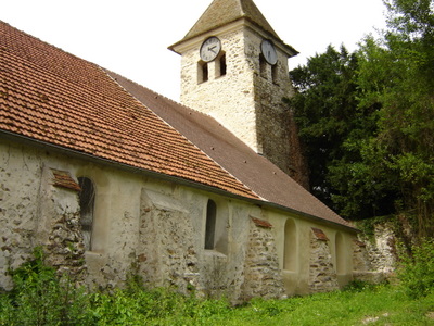 Église paroissiale Saint-Quentin. Un dossier concernant les réparations urgentes à effectuer aux toitures de l’église de Coupru nous a été remis par Monsieur Pierre Pottier. Ce bel édifice gothique se dresse sur une petite éminence, au milieu du village. Il présente une particularité héritée de l’époque carolingienne. Il possède une entrée latérale, du côté nord, le mur occidental de la nef étant fermé par un mur droit percé de trois fenêtres en forme de lancette. Les photographies que nous publions montrent suffisamment l’intérêt archéologique du monument. Il faut louer particulièrement en cette grande église de village l’harmonie des proportions. Des travaux importants semblent avoir été faits à la fin du Moyen Âge. L’ensemble des toitures de la nef et du clocher était dans le plus mauvais état.