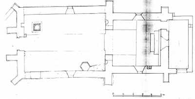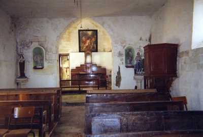 La nef est le fruit d’une reconstruction qui ne doit pas être antérieure au XVIe siècle. Par les matériaux, elle s’harmonise avec le chœur. La façade ouest, un simple mur-pignon, est percée d’un portail à mouluration soignée. Á l’intérieur, les fonts baptismaux, vasque hémisphérique creusée dans un bloc calcaire de section carrée et feuillages aux angles, pourraient remonter à l’époque de la construction du chœur.