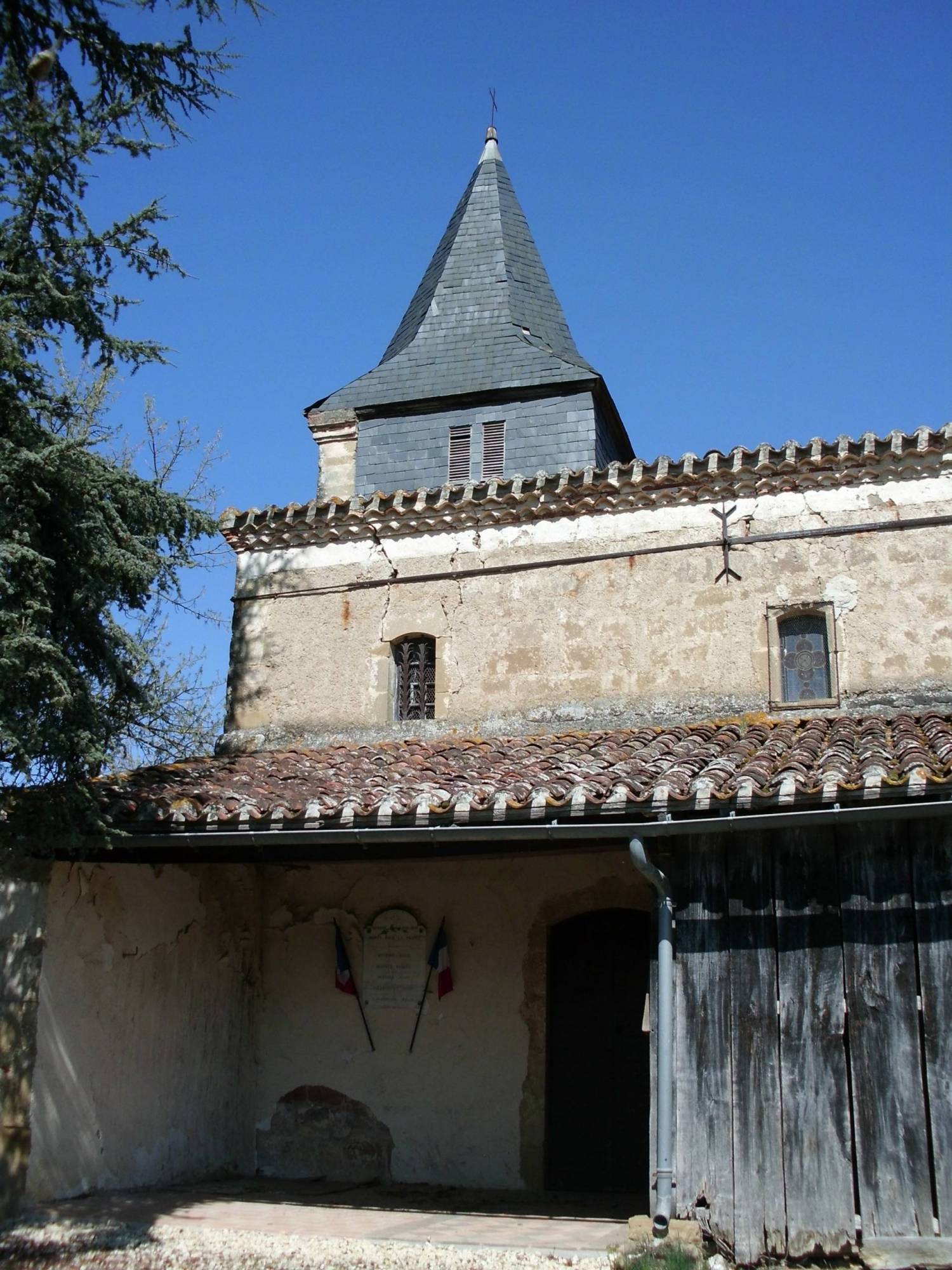 L’église est surmontée à l’ouest par un petit clocher à huit pans, couvert en ardoise. Le reste de l’édifice est couvert en tuile canal, assortie d’une corniche à trois rangs de génoises.