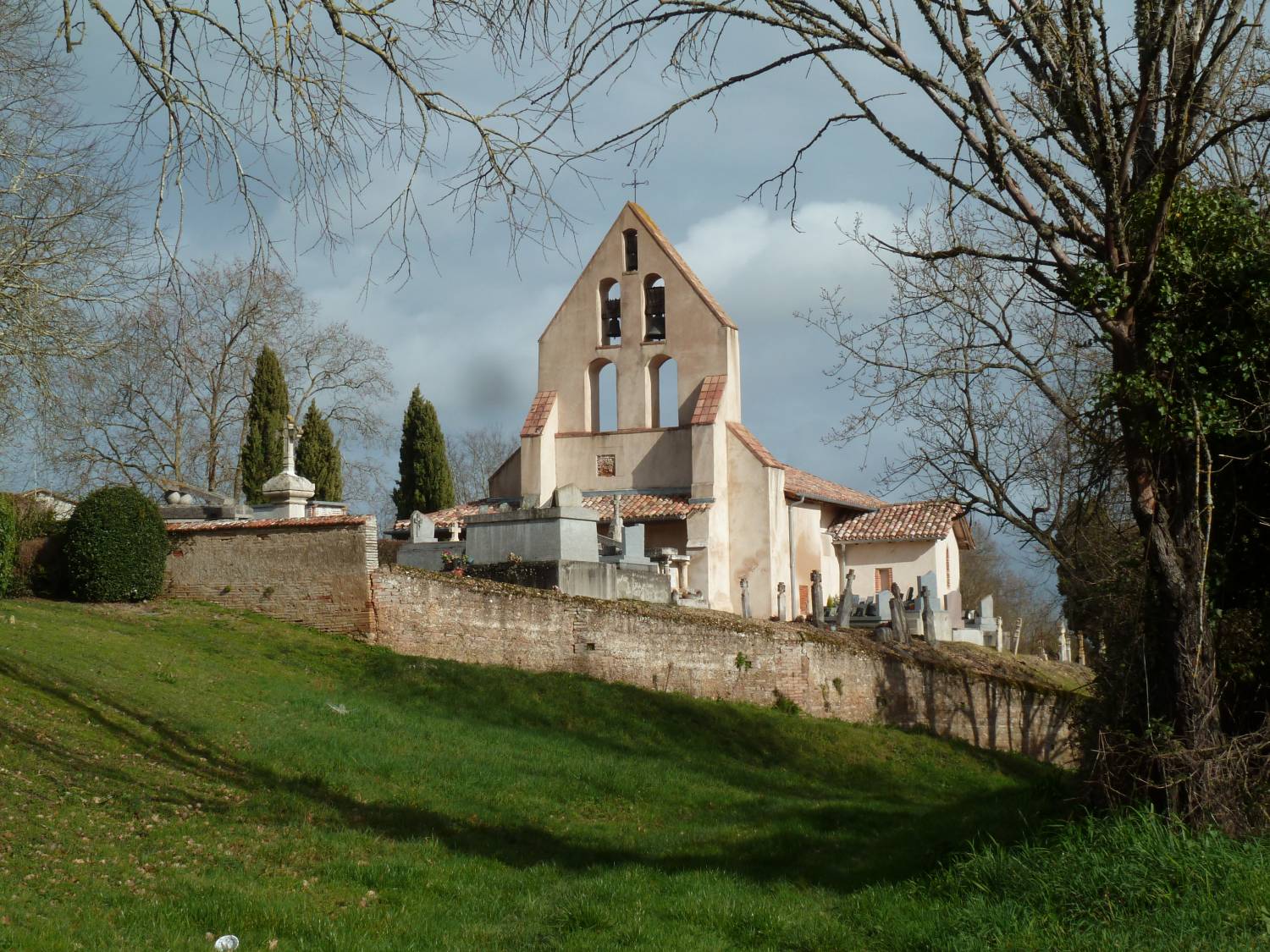 L’église Saint-Martin est implantée en bordure sud du village, hors ses anciennes fortifications. Elle est entourée d’un cimetière sur ses quatre côtés, lui-même bien délimité par un mur de clôture.