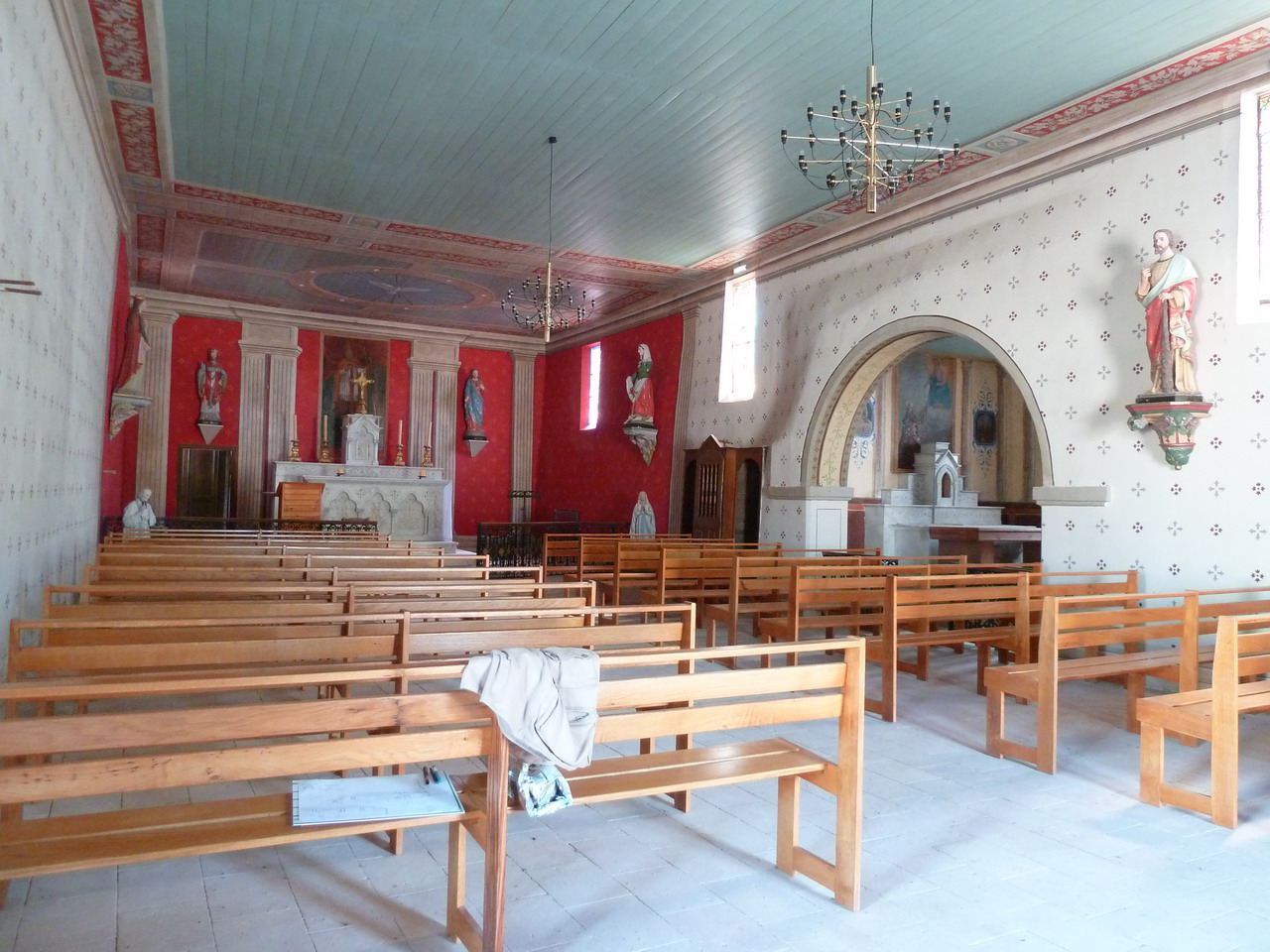 L’édifice actuel a une origine médiévale qui remonte au moins au XVe siècle : le portail de style gothique flamboyant dont la base des piédroits, richement sculptée a disparu sous un bétonnage en ciment-pierre dans les années 1991-1992 et a connu ensuite plusieurs remaniements. Aux XVIIe s., des travaux sont opérés suite à des dégâts imputables aux Guerres de Religion, telle que la réfection du clocher-mur triangulaire et la cloche de 1684. Ensuite au XVIIIe s., les peintures du chevet et de la chapelle latérale sud sont recouvertes par un décor du peintre Olé, daté de 1903. Enfin, au XIXe s., est reconstruit la sacristie actuelle car le cadastre napoléonien indique une autre implantation, et des travaux de réfection sont accomplis en 1898 au niveau de la toiture et du voligeage.