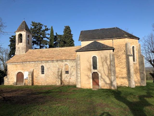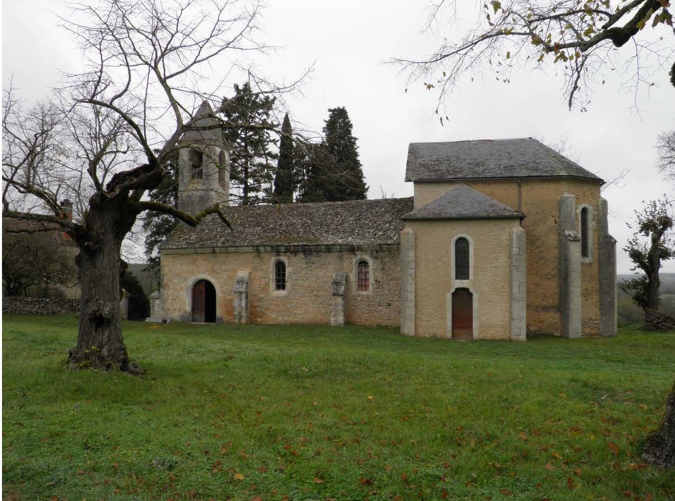 L’église est peut-être issue du transfert à la Pannonie de la chapelle primitive du fort Saint-Cyr, établi sur la rive gauche de l’Alzou et détruit à la fin du XIIe siècle. Son vocable est attesté par plusieurs mentions tirées d’anciens pouillés du XIVe siècle et reprises dans le pouillé de Dumas en 1679. D’après le chanoine d’Albe, la reconstruction de l’édifice serait due à Jean Magdelon de Lagrange, qui l’édifia avant sa mort en 1655. Mais les traces archéologiques laissent penser à des bases plus anciennes.