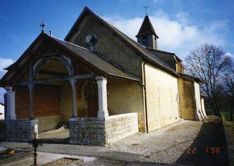 Église Notre-Dame de l’Assomption. L’église de Crans est mentionnée dès 1145, lors de la fondation, dans le voisinage, de l’abbaye cistercienne de Chassagne. Elle dépendait alors de l’abbaye bénédictine d’Ambronay (prieuré de Chalamont). Au milieu du XIIIe s., elle était déclarée détruite (erma et diruta). Il faut croire qu’elle fut reconstruite peu après, car elle présente un choeur tout à fait caractéristique de l’architecture cistercienne de la fin du XIIIe siècle. Elle figure d’ailleurs dans le testament de Gérard de La Plaud qui, en 1299, fit un legs pour son « œuvre » (operi), c’est-à-dire pour ses travaux de gros œuvre. Le clocher a été détruit sous la Révolution; il n’en reste que la souche, sur la travée de chœur ; il a été remplacé par un petit clocheton de bois. La Révolution est aussi responsable de la disparition d’une partie de la sculpture. Les archives ne mentionnent pas de transformations importantes de cette église au XIXe siècle. Il y avait cependant des projets de voûter la nef et d’abattre la chapelle nord pour la remplacer par un transept (vers 1860). La façade ouest est précédée par une galonnière. Le portail est particulièrement remarquable par son tympan sculpté qui représente une Vierge à !’Enfant assise, s’inscrivant dans un trilobe, et environnée d’une dizaine d’anges. La voussure extérieure, en tiers-point, est ornée de feuilles, et, à la pointe, d’un agneau. La nef est couverte d’une charpente à rampants lambrissés et entraits engoulés, ce qui est un cas unique dans le département de l’Ain. Cette charpente passe pour avoir été entièrement faite à la fin du XIXe s., mais, en 1613, la nef était déjà couverte « d’un lambressis fait en voûte ». La travée de chœur est voûtée sur croisée d’ogives avec clef ornée d’une « tête de feuilles ». L’abside, à chevet plat, est couverte de même, les branches d’ogives portant sur des culots ornés aussi de têtes de feuilles. Le mur absidial est percé de trois fenêtres étroites, celle du milieu plus haute ; on rattache cette disposition à la tradition cistercienne. La porte latérale sud de la nef donnant sur l’extérieur est ornée d’un tympan trilobé montrant une main bénissante entourée de deux animaux symboliques. Ce portail semble contemporain de celui de la façade ouest (fin XIIIe – début XIVe siècle). Sur le côté sud de la travée de chœur, s’ouvre la chapelle Notre Dame fondée en 1425 par le curé de Bourg Pierre Balandrin, sous le vocable de Notre-Dame. Les branches d’ogives sont simplement chanfreinées et la fenêtre est sans remplage. Une inscription latine commémore cette fondation : Anno Domini Millesimo quatercentesimo vigesimo octavo Dominus Johannes Ballandrini curatus Burgi in Bressia fecit fieri hanc capellam in honorem Beate Marie Virginis ipsamqu e dotavit pro quatuor missis in eadem singulis hebdomadis perpetuo celebrandis. Sur le côté nord de la nef, s’ouvre la chapelle Saint -Jean-Baptiste-et-Saint Jérôme, construite en 1516 par Béraud du Molard, curé de Crans et premier doyen du chapitre de Meximieux. Cette chapelle comprend deux travées voûtées sur croisées d’ogives; la clef de la travée ouest est ornée d’un écusson frappé d’une croix (de Savoie ?) et celle de l’ouest, de trois clous. Les fenêtres sont à remplages flamboyants. L’église renferme plusieurs statues anciennes : Vierge à !’Enfant, saint Jérôme et saint Jean-Baptiste, en pierre polychrome, sainte Apollonie et sainte Catherine en bois polychrome. Le maître autel est surmonté d’un retable en bois doré avec colonnes torses du milieu du XVIIe siècle. Autels du XVIIIe s. dans les chapelles. La Sauvegarde de l’Art français a accordé 120 000 Fen 1999 pour la remise en état de la charpente et de la couverture.