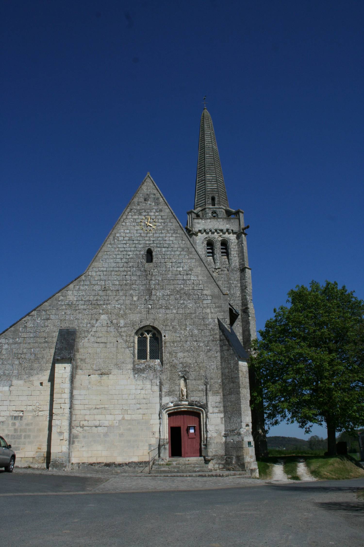 A présent situé sur une place bien dégagée et arborée, l’édifice en tuffeau a longtemps été intégré dans une cour bordée par les dépendances du prieuré, dont il ne reste que l’ancien presbytère devenu mairie. Il est constitué d’une large nef de trois travées et d’un seul bas-côté, au nord. Le chœur présente un plan carré et un chevet plat, éclairé par une grande baie à remplage flamboyant. La nef est voûtée en croisée d’ogives, le chœur présente une voûte à liernes et tiercerons. Côté sud, la troisième travée est prolongée d’un clocher à plan carré muni de deux contreforts aux angles, sur lequel s’appuie une fine tourelle d’escalier à vis qui permet d’accéder aux parties supérieures ; au droit du chœur a été édifiée au XVIe s. une chapelle funéraire pour la famille Turpin de Crissé, aujourd’hui à usage de sacristie. On pouvait y accéder directement depuis l’extérieur par une porte surmontée d’une coquille, murée en 1846.