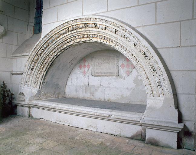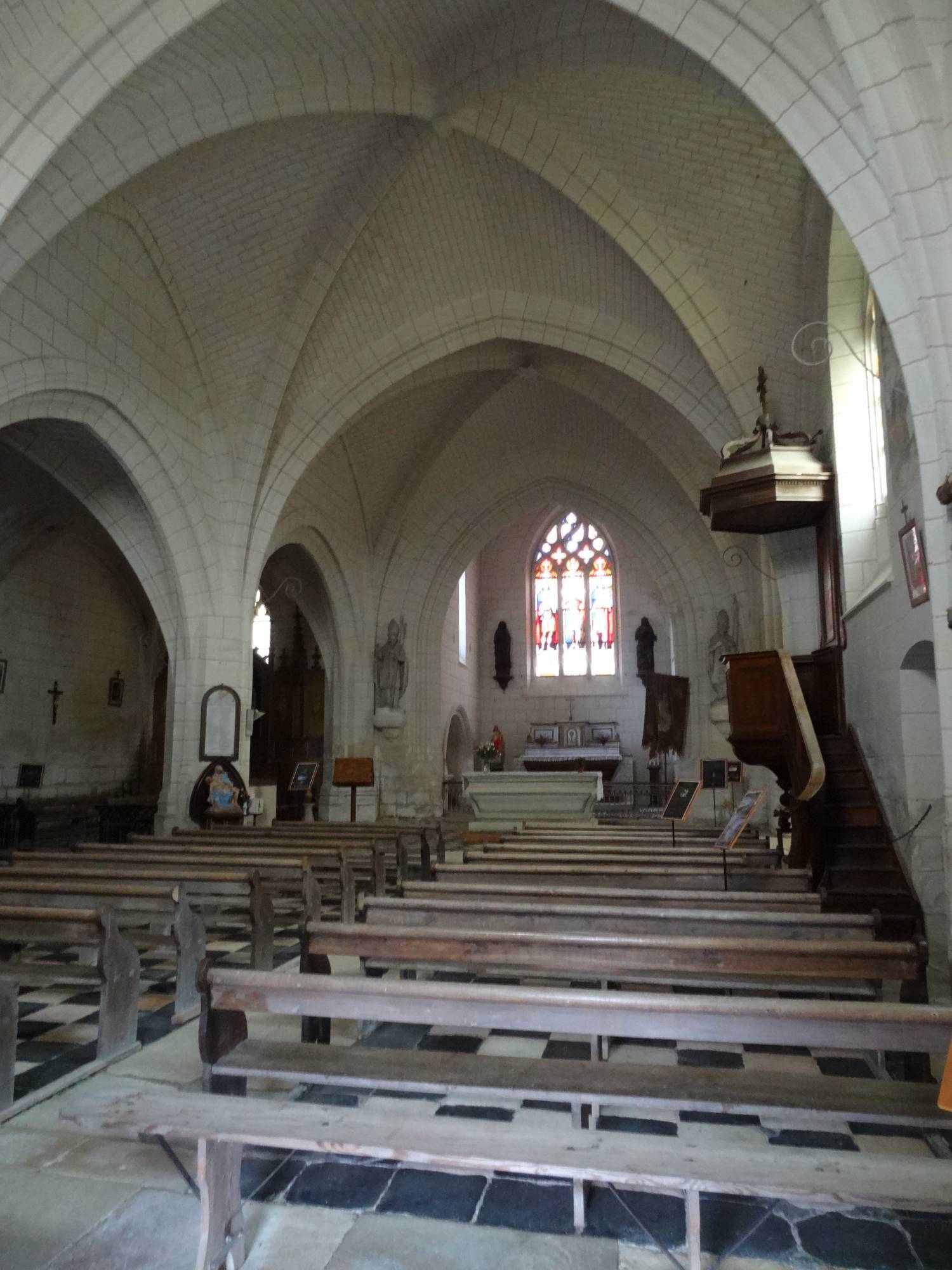 A l’intérieur de l’église, le lavabo situé côté sud du chœur constitue un élément caractéristique de la Première Renaissance, avec son décor sculpté à motifs de rinceaux, candélabres et vases. Dans l’actuelle sacristie, il reste du tombeau un enfeu ourlé de quatre niveaux de décors sculptés et portant une inscription funéraire à la mémoire de Jacques Turpin, Catherine du Bellay et leurs enfants. Des restes de peinture murale côté sud de la nef portent des traces d’armoiries de la famille Turpin. La baie du chœur est habillée d’un vitrail de l’atelier Lobin, de Tours, daté de 1869 et consacré à saint Maurice. La chaire à prêcher et l’autel ont été installés en 1775-1776. La chapelle de la Vierge est dotée d’un grand autel néogothique en bois.