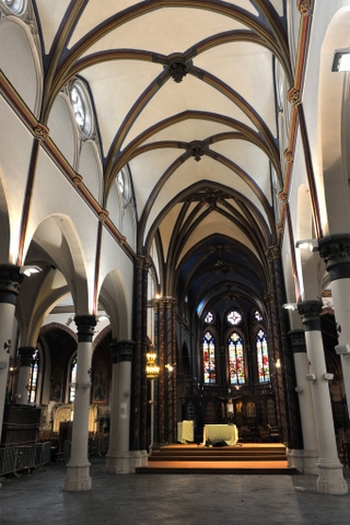 Dotée de vitraux à la fin du siècle, puis de peintures murales, aujourd’hui en partie dissimulées sous un enduit clair, l’église abrite plusieurs œuvres d’art, en particulier une intéressante « Descente de croix » de Pharaon de Winter[1]. Elle eut à souffrir dans la seconde moitié du XXe s. d’un défaut d’entretien généralisé, en particulier dans ses couvertures, ce qui amena l’effondrement de certaines sections de voûtes et la fermeture de l’édifice.
