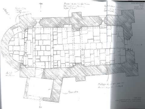 La Réforme, en ce pays, dans les années 1560, est un mouvement puissant, porté par la société quasiment unanime. Il ne reste plus, dès cette époque, un seul catholique à Cros. Durant les guerres de Religion, la destruction des édifices catholiques est systématique : elle est d’ailleurs une des marques symboliques que la Réforme impose sur les territoires qu’elle contrôle. Même si le fait n’est pas documenté à Cros de façon précise (il l’est plus largement pour le bourg voisin de Saint-Hippolyte-du-Fort, par exemple), il y a tout lieu de croire que ce fut le cas de Saint-Vincent. En effet, l’abbé Goiffon, dans ses Monographies paroissiales (1900), cite une visite épiscopale de 1675 qui, selon lui, « constata que l’église pourrait être rétablie facilement et à peu de frais, les murailles étant encore en leur entier jusqu’à la naissance des voûtes ; celles du chœur étaient cependant un peu plus basses[2] » ; l’examen de l’édifice paraît confirmer ces dires, alors que ce procès-verbal semble être introuvable aujourd’hui. Il faut dire que pour détruire les édifices gothiques à plusieurs nefs, il suffisait de saper les piliers à l’intérieur, d’un seul côté, pour provoquer l’écroulement de l’ensemble. Les édifices romans à nef unique étaient moins aisés à abattre, et, si bon nombre ont été détruits par la sape du mur sud – destruction d’esprit « militaire » – entraînant la voûte, d’autres ont pu être démolis plus progressivement, en s’attaquant à la voûte par le haut, au pic, comme agiraient un maçon et son équipe, sans provoquer d’effondrement généralisé. C’est, semble-t-il, le cas de l’église de Cros, où d’ailleurs le cul-de-four de l’abside a visiblement été démoli, alors qu’il subsiste intact, en général, quand on procède à la destruction expéditive de la nef[3].