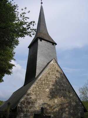 [2] Le 27 mai 1868, le conseil municipal vota une somme importante pour renouveler la couverture du clocher et « prévenir ainsi les dégâts qu’occasionnerait la pluie tombant sur les pièces de bois principales de la construction » mais, le 30 décembre 1869, le Conseil demanda un secours au préfet pour réparer d’urgence la toiture « en remplaçant la vieille tuile usée par de l’ardoise qui chargera moins la charpente déjà bien vieille et bien affaiblie » et, le 30 octobre 1870, il paya Pierre Liard, couvreur à Fervaques, pour ses travaux (Arch. dép. Calvados, 556 Edt 1/1). Une grosse dépense fut faite à nouveau en mai 1877 pour réparer « une assez grande partie de l’église… découverte par un ouragan » ; le 20 décembre 1884, le Conseil fit renouveler 122 m² de toiture (556 Edt 1/2).