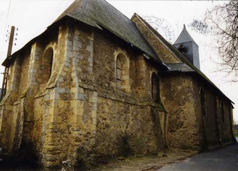 L’édifice construit en moellons enduits comprend un chœur rectangulaire de deux travées du XIVe s. au-devant duquel se développe la nef rectangulaire édifiée en 1786. Le chœur à l’architecture massive est doté d’un chevet plat oblique, épaulé de contreforts. Deux importants massifs de maçonnerie étayent l’arc triomphal faisant communiquer la nef avec le chœur. Les élévations présentent deux niveaux. Au-dessous d’un important empattement du mur amorti par un glacis se dresse le mur dans lequel sont percées cinq baies similaires en plein cintre, régularisées en 1786. Le chœur est coiffé d’une croupe d’ardoise, et le toit s’adosse au pignon couvert de la nef. Celle-ci couverte d’un toit à deux versants est ponctuée à l’ouest par un pignon que surmonte un petit campanile habillé d’ardoise. Les murs gouttereaux renforcés par un contrefort sont percés de deux baies chacun, semi-circulaires, identiques à celles du chœur et légèrement décalées. La petite façade ouest est épaulée par deux contreforts angulaires. Une très grande simplicité caractérise l’architecture de la nef qui prolonge parfaitement le chœur par sa rusticité. Un portail très sobre en plein cintre à impostes donne accès à la nef. La charpente possède un imposant lambris en voligeage jointif, avec couvre-joint.