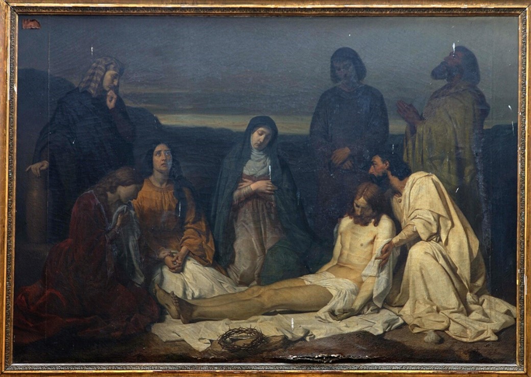 L’œuvre aurait besoin d’une restauration. La toile est endommagée à plusieurs endroits comme en témoigne la déchirure en bas du tableau. De plus, un large réseau de craquelures est présent sur l’ensemble du tableau. Enfin il faudrait retirer le vernis oxydé.