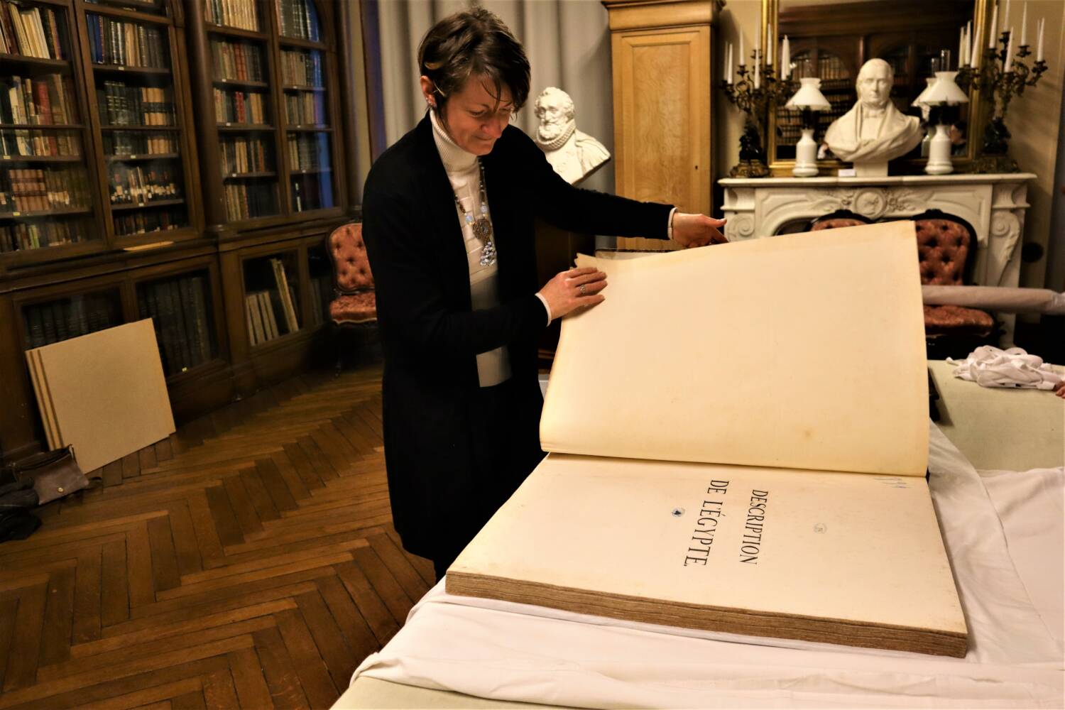 La description de l’Egypte est un ouvrage monumental qui mobilisa pendant plus d’un quart de siècle l’imprimerie Impériale puis l’imprimerie Royale. Les 21 volumes de cette collection furent donnés aux villes importantes, chefs-lieux de département ou d’arrondissement. Et pourtant Bolbec, bien que n’étant ni l’un ni l’autre, peut aujourd’hui s’enorgueillir d’en avoir reçu un exemplaire, puisqu’à la fin de l’année 1833, le maire écrivit à son député pour lui demander d’intervenir afin d’obtenir cet ouvrage pour la ville. Après bien des lettres encore visibles aux archives municipales, en 1834, le Sous-Préfet du Havre informa le maire de Bolbec que le Roi avait accordé à Bolbec, un exemplaire de la Description de l’Egypte. L’ouvrage fut relié par le relieur de la ville et un meuble fut fabriqué pour recevoir tous les volumes de cette édition.