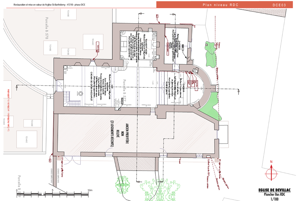 Au XVIIème et XVIIIème siècles, un presbytère est adjoint au Sud. Quant à la sacristie, elle a été tardivement ajoutée dans l’angle Nord-Est.