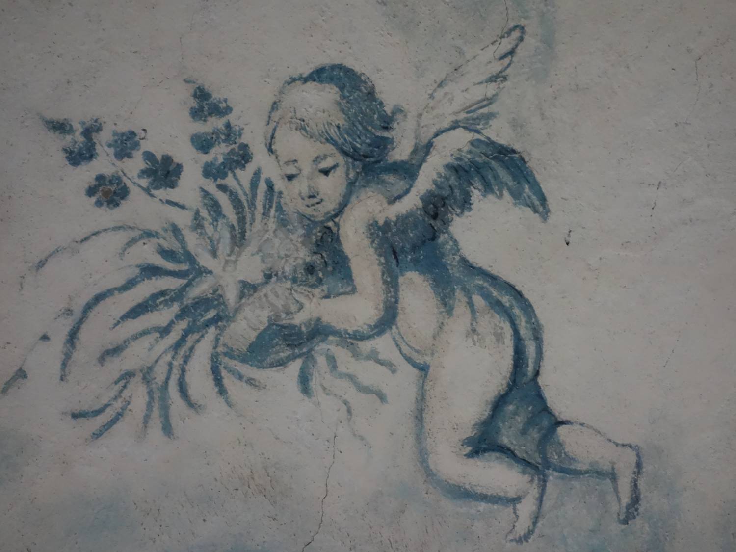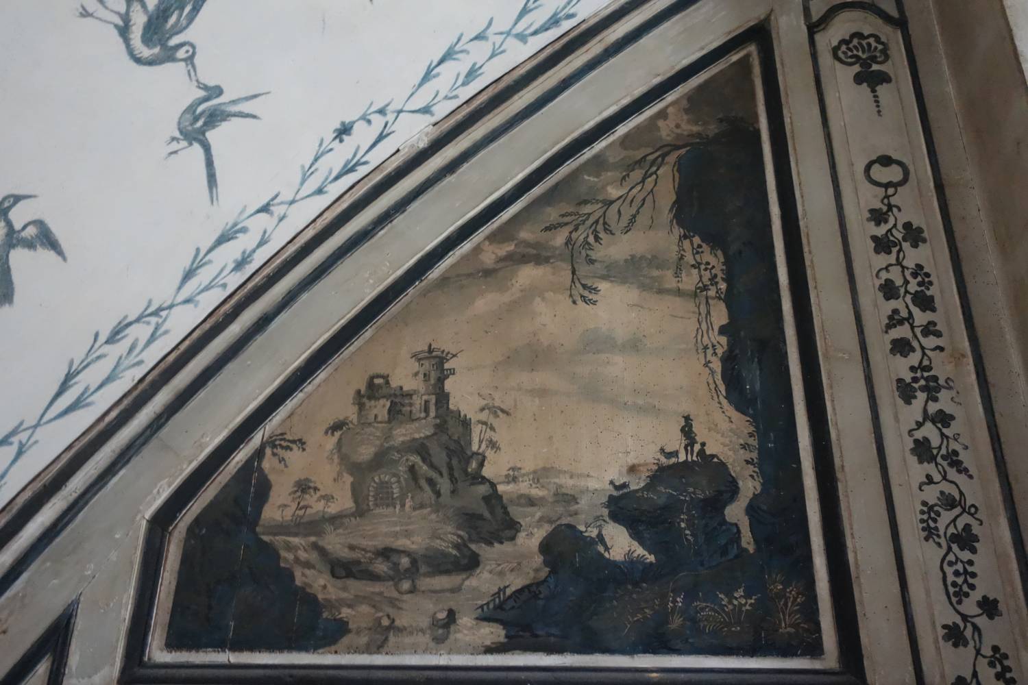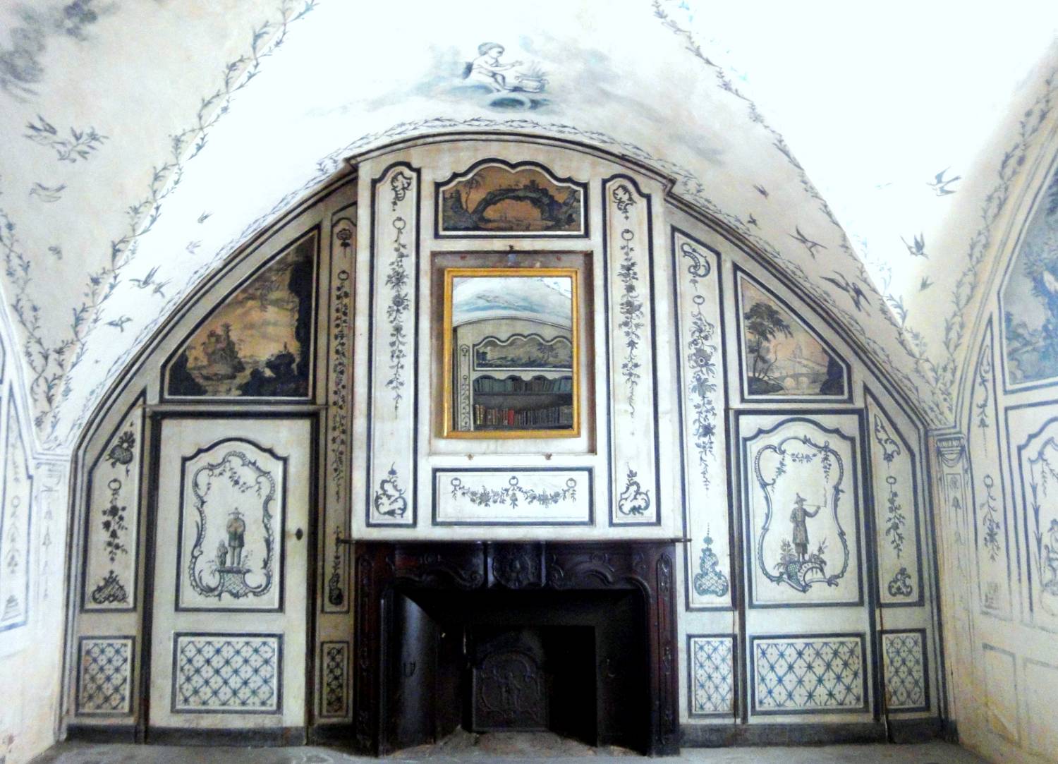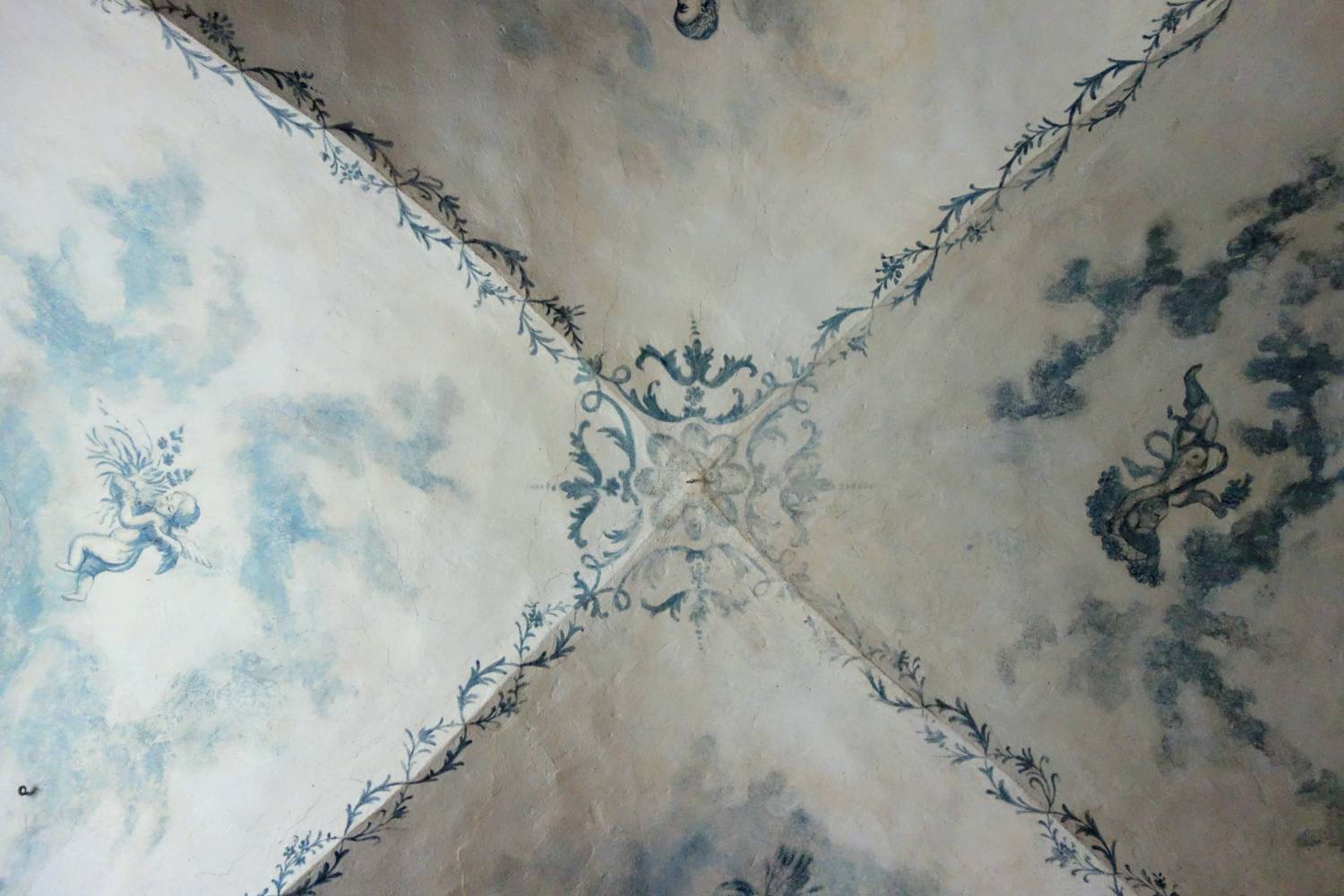 Le décor avait aussi été passablement abîmé par la fumée d’une cheminée XVIIIe siècle que l’on avait utilisée. Par exemple la voûte avait été encrassée au point que les putti représentant les Quatre Saisons avaient totalement disparu sous la suie ; la fresque murale avait souffert d’être étouffée et emprisonnée par l’amas de meubles et la poussière des vieux livres de piété.