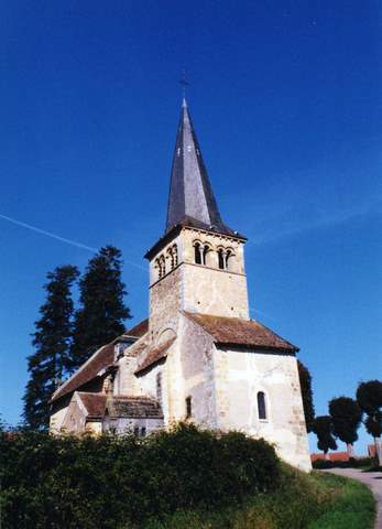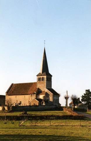Église paroissiale de Diennes, dédiée à saint Pierre et saint Paul, remonte pour ses parties les plus anciennes au XIIe siècle. Aucun document ne permet de dater avec précision la création de la paroisse. On sait cependant, d’après les écrits de Mgr Crosnier, qu’un couvent d’hommes aurait été établi en 1121. La paroisse appartenait au diocèse de Nevers et dépendait de l’archiprêtré de Thianges, alors que la cure et le prieuré étaient à la collation du prieur de Saint-Révérien. L’édifice se compose d’ »une nef et d’un chœur en partie moderne; l’abside a été détruite… et remplacée par une construction carrée moderne » (G. de Soultrait). La façade, épaulée par deux contre forts, présente une porte cintrée, très simple, surmontée d’une fenêtre également cintrée, très étroite. Les murs de la nef, d’époque romane, sont éclairés de chaque côté par deux étroites fenêtres situées en hauteur. Le clocher carré, plus récent que la nef, s’élève au-dessus du chœur. Il est percé sur chaque face de deux baies cintrées garnies de tores, qui retombent sur des colonnettes à chapiteaux sculptés, et souligné d’une corniche sculptée de modillons simples. Il est surmonté d’une pyramide en ardoise assez courte et renferme deux cloches classées Monuments historiques depuis 1922; l’une, qui porte la date de 1534, provient de l’ancienne église Saint-Médard d’Aubigny-le-Chétif; l’autre date de 1637. Dans l’épaisseur des murs de la nef furent creusées au XVe s. deux petites chapelles renfermant des autels adossés aux murs. Les parois de ces chapelles sont couvertes d’inscriptions relatives à la famille Pierre, bienfaitrice de l’église. La plus ancienne est l’épitaphe de Pierre Pierre, décédé en 1488. Vingt-huit autres inscriptions sont réalisées de 1492 à 1508 à l’occasion de travaux, de fondations ou d’invocations pieuses… Le chœur rectangulaire est voûté en berceau. À l’occasion de récents travaux, le plafond de la nef a été déposé, faisant apparaître une charpente à chevrons formant fermes, assez remarquable et en bon état. Ces travaux ont permis la mise au jour de chapiteaux sculptés qui avaient conservé une partie de leur polychromie d’origine. Pour la réfection de la charpente et de la couverture de la nef qui a permis la réouverture de l’édifice, la Sauvegarde de l’Art français a accordé 70 000 F en 1999 et 80 000 F en 2000.