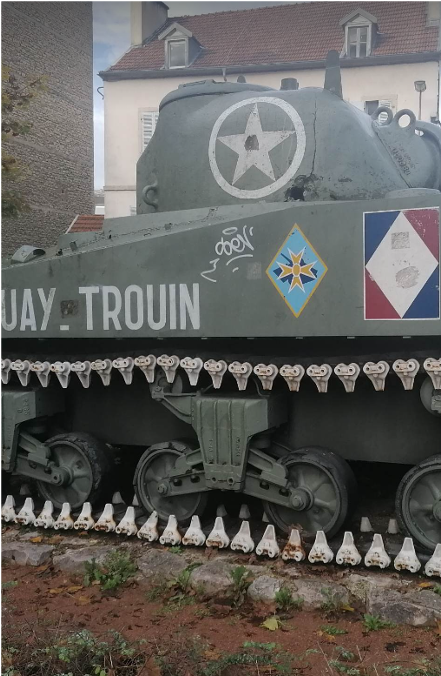 Situé en extérieur, ce dernier a donc subit les aléas météorologiques depuis plus de 70 ans, expliquant son état actuel : tôle corrodée, peinture écaillée, chenille endommagée, tags… Il conviendrait alors de lui redonner une belle apparence et la fière allure qu’il avait en septembre 1944, pour ne pas oublier notre histoire.