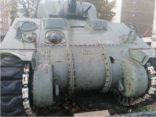 Ce char est donc un char américain dont le modèle a été mis en circulation dès l’année 1943 : il fut produit en grande quantité pendant la Seconde Guerre mondiale. Bien que touché le 6 septembre 1944, il fut réhabilité pour être exposé. Aujourd’hui, ce dernier se positionne et se conserve pour sa dimension mémorielle.