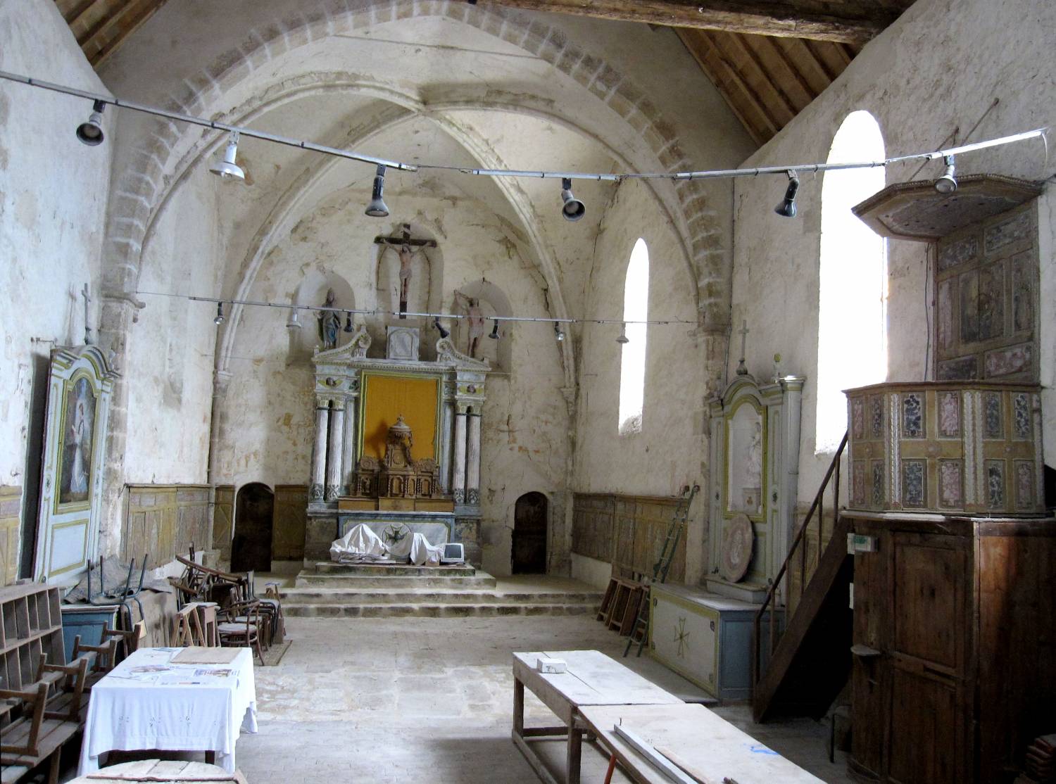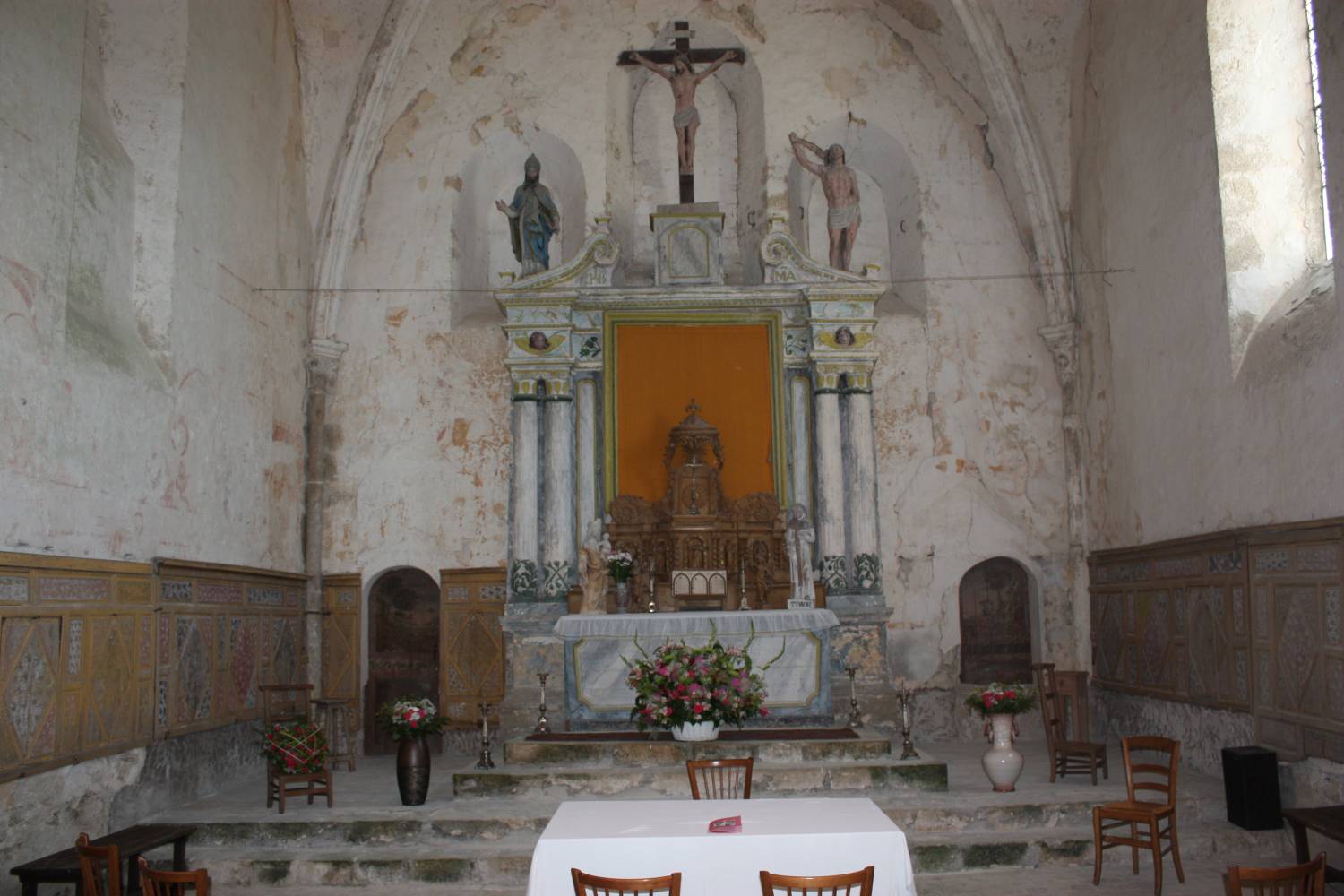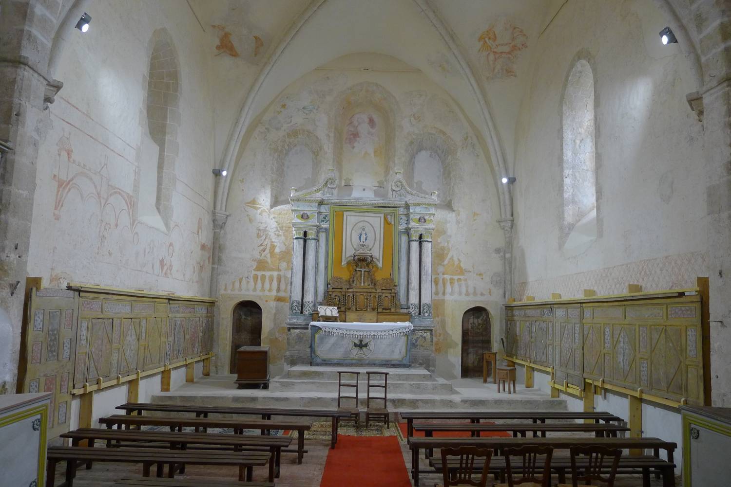 Devant la confusion apparente de ces différentes strates historiques, le chantier a conduit à des choix déontologiques, fondés sur les états de conservation respectifs des décors identifiés et la perspective d’aboutir, dans chacun des cas, à un résultat cohérent et intelligible. En conséquence, le parti de restauration adopté a privilégié, sur les parois latérales, le décor peint posé sur l’enduit d’origine, datable du XIIIe siècle, et sur celle du chevet, les peintures ayant accompagné l’installation du retable au XVIIe siècle.
