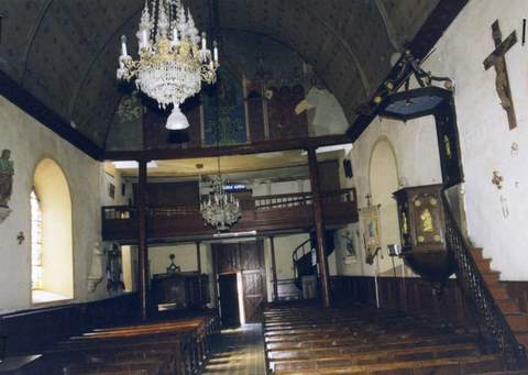 Parmi les éléments de décor récents, il faut signaler la pittoresque arcature peinte de style néo-gothique, dont le centre est orné d’une représentation de la Vierge : elle décore, à l’avant de la tribune, le revers du clocher.
