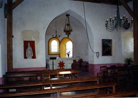 C’est au cœur du Morvan, au centre même du village de Dommartin, que se dresse l’église Saint-Martin, un des rares témoins de l’architecture romane dans une région où nombre d’églises ont été reconstruites au XIXème s. Datant probablement de la fin du XIème s., cet édifice, actuellement non protégé, est une construction fort modeste mais non dénuée d’intérêt. D’une longueur de 18 m, l’église est de plan rectangulaire et orienté, se composant d’une nef unique avec charpente à chevrons formant fermes et d’un chœur d’une travée voûté en cul-de-four : cette voûte est d’ailleurs le principal témoin de l’architecture romane de ce lieu. L’accès à la charpente se fait par l’extérieur par une lucarne située près de la sacristie. Le clocheton, charpenté, est couronné d’une flèche. Des contreforts, dont deux encadrent la porte, consolident l’édifice. L’intérieur ne présente pour sa part rien de remarquable. Au XIXème s., les matériaux d’origine de la couverture furent remplacés par l’ardoise et on fit une voûte de plâtre dans la nef. En 1888, l’architecte Tessier présenta un projet de destruction afin de pouvoir bâtir une église qui aurait été proche de celle de Château-Chinon, mais l’idée fut abandonnée. Cependant, l’état sanitaire du lieu nécessitait des travaux. Une première campagne, pour laquelle la Sauvegarde de l’Art Français a versé en 1993 la somme de 50 000 F, a permis la réfection du clocheton en bardeaux de châtaignier. Une deuxième campagne rendra à l’édifice, du moins en grande partie, son aspect originel : mise en œuvre d’une voûte lambrissée, réfection de la couverture de la nef et des vitraux ; dans ce but, la Sauvegarde de l’Art Français a participé en 1994 à hauteur de 100 000 F.