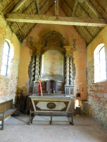 L’ancienne chapelle abrite encore un retable – mutilé – doté de colonnes torses et de pots-à-feu.