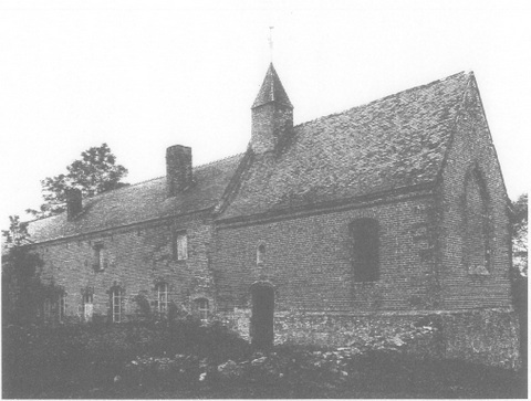 Aujourd’hui isolée, elle était à l’origine intégrée dans un modeste hospice destiné aux voyageurs indigents, accompagné de bâtiments nécessaires à l’exploitation d’un petit domaine agricole. Affecté par la suite à l’hébergement de vieillards et d’infirmes, et cloisonné à cet effet, l’hospice maintint son activité jusqu’aux combats de 1793[1] et aux ventes révolutionnaires qui le firent adjuger à un cultivateur. Remis en état après une nouvelle vente, en 1820, les bâtiments connurent une déchéance progressive, jusqu’à celle de l’ancien hospice qui fut ruiné par le feu il y a une quinzaine d’années.
