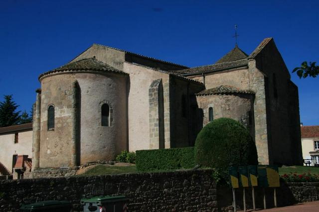 Cette église était prieurale dépendant à l’origine de l’abbaye de l’abbaye de Manzat. Elle fut construite en 2 campagnes. Elle est mentionnée pour la première fois dans une bulle du Pape Alexandre III en 1165. En 1287 et 1353 des incendies détruisent partiellement l’église qui est reconstruite et voûtée d’ogives. Au XVIIe siècle l’église, dédiée à la Sainte-Croix change de vocable pour prendre celui de Saint-Nicolas. Le décor intérieur date du XVIIIe.