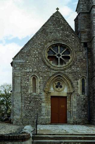 Dédiée à saint Martin, l’église paroissiale de Drosay est implantée dans un cimetière fortement rehaussé par rapport au sol naturel. Cette anomalie pourrait indiquer la présence d’une nécropole très ancienne. L’édifice, inscrit à l’inventaire supplémentaire des Monuments historiques, est constitué de deux nefs séparées par une très belle colonnade à chapiteaux octogonaux de grès. La nef du nord de quatre travées est précédée à l’ouest par une façade en grès, calcaire et silex, dont la construction remonte au XIIIème s. L’arc brisé de son portail retombe sur deux élégantes colonnettes ; cette porte est flanquée de deux étroites fenêtres. Au-dessus, le mur pignon est percé d’une rose à huit meneaux (dont deux ont disparu). Un chœur terminé par un chevet plat prolonge la nef de deux travées. Ses maçonneries disparates laissent entrevoir de nombreux remaniements. Un beau retable du XVIIème s., orné au centre d’une toile du XVIIIème s. représentant l’Ascension, occupe le mur du fond. La construction des deux nefs en moyen appareil de grès soigné remonte au XVIème s. La nef méridionale, précédée d’un massif clocher-porche, s’étale sur cinq travées, rythmées à l’ extérieur par des contreforts en grès couronnés par des pierres en dos d’âne dont l’une porte une inscription. Sur le mur de la chapelle nord s’ouvre une chapelle formant un faux croisillon de transept. Dédiée à la Vierge, elle date de 1613. Au XIXème s., la couverture lambrissée a été remplacée par une voûte en torchis. L’ensemble des entraits et poinçons des fermes de la charpente ont alors été sciés. La toiture a donc exercé une poussée sur les murs qui n’avaient pas été prévus pour cette surcharge. Il a été nécessaire de remettre la couverture du chœur dans son état ancien. Dans la nef, on a installé provisoirement des tirants métalliques pour réduire la poussée sur les murs. Une subvention de 100 000 F a été versée en 1992 par la Sauvegarde de l’Art Français pour les travaux de réfection de la charpente et de la couverture du chœur.