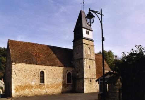 Placé sous le vocable de saint Pierre, cet édifice date du XVIe siècle. Au mur sud de la nef, quelques lits de pierres disposés en « arêtes de poisson » et deux petites fenêtres romanes obstruées autorisent à penser que cette partie du bâtiment remonterait au XIIe siècle. Cette paroisse a été supprimée lors de la Révolution pour devenir une annexe de l’église d’Épemon. Il s’ensuivit des démêlés nombreux entre les habitants de Droue et la municipalité d’Épemon. Celle-ci s’appropria le mobilier, bien qu’il ait été partiellement la propriété des habitants de Droue. Abandonné, l’édifice ne tarda pas à se dégrader. Jugé « inutile », il faillit être démoli en 1811 à la demande de la commune d’Épernon. Toutefois, les habitants de Droue réparèrent leur église et obtinrent, en 1847, qu’elle soit à nouveau érigée en paroisse. Son plan se caractérise par un vaisseau principal très étroit (6,10 m) de trois travées. Dans son prolongement, le chœur se termine par une abside à trois pans. La nef est doublée au nord par un bas-côté en appentis de 3,60 m de large. De part et d’autre du chœur s’élèvent au nord une chapelle et au sud une tour quadrangulaire à trois larmiers surmontée d’une couverture en ardoise. L’édifice est construit en grès et moellon : le grès est employé pour les contreforts et l’encadrement des ouvertures.