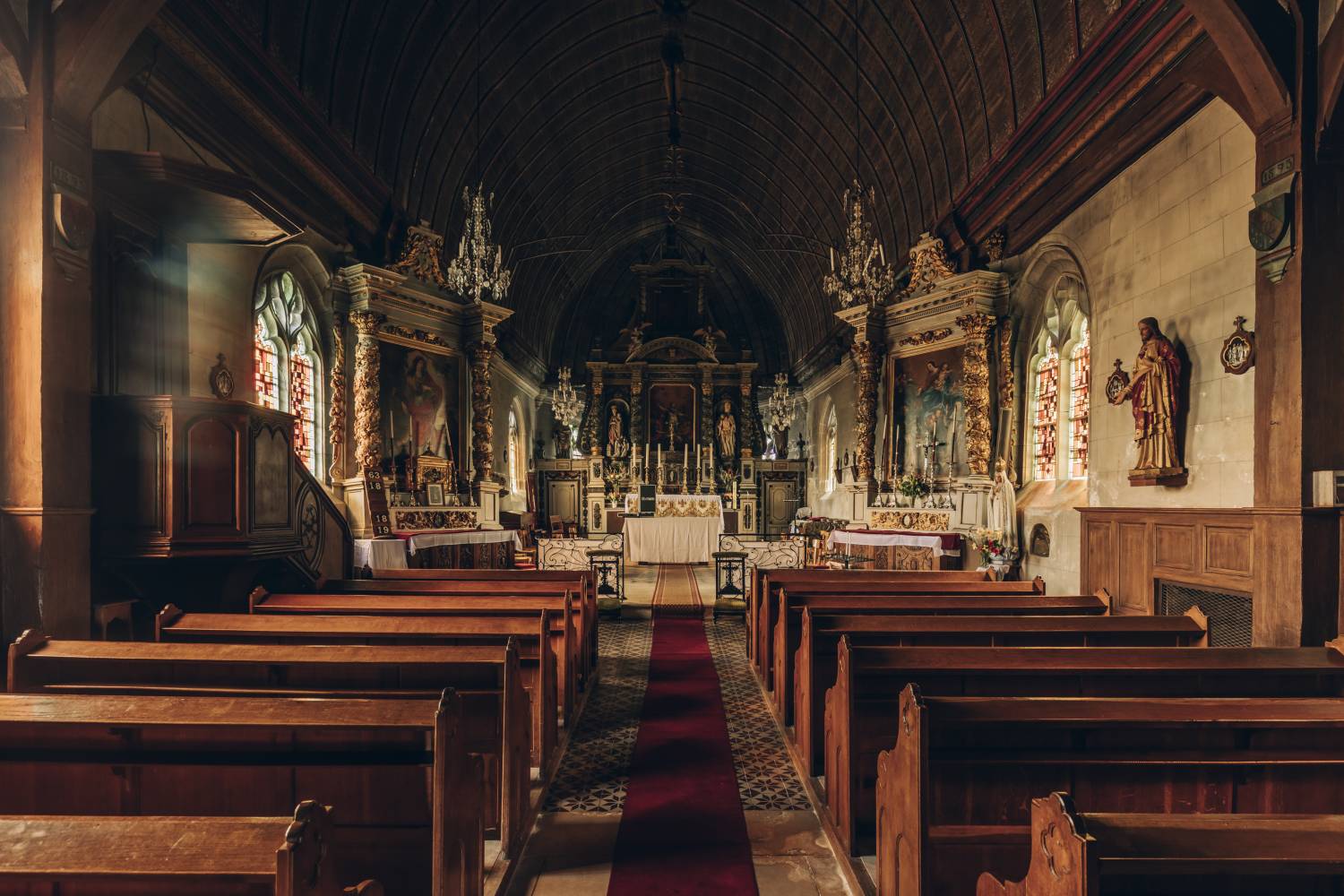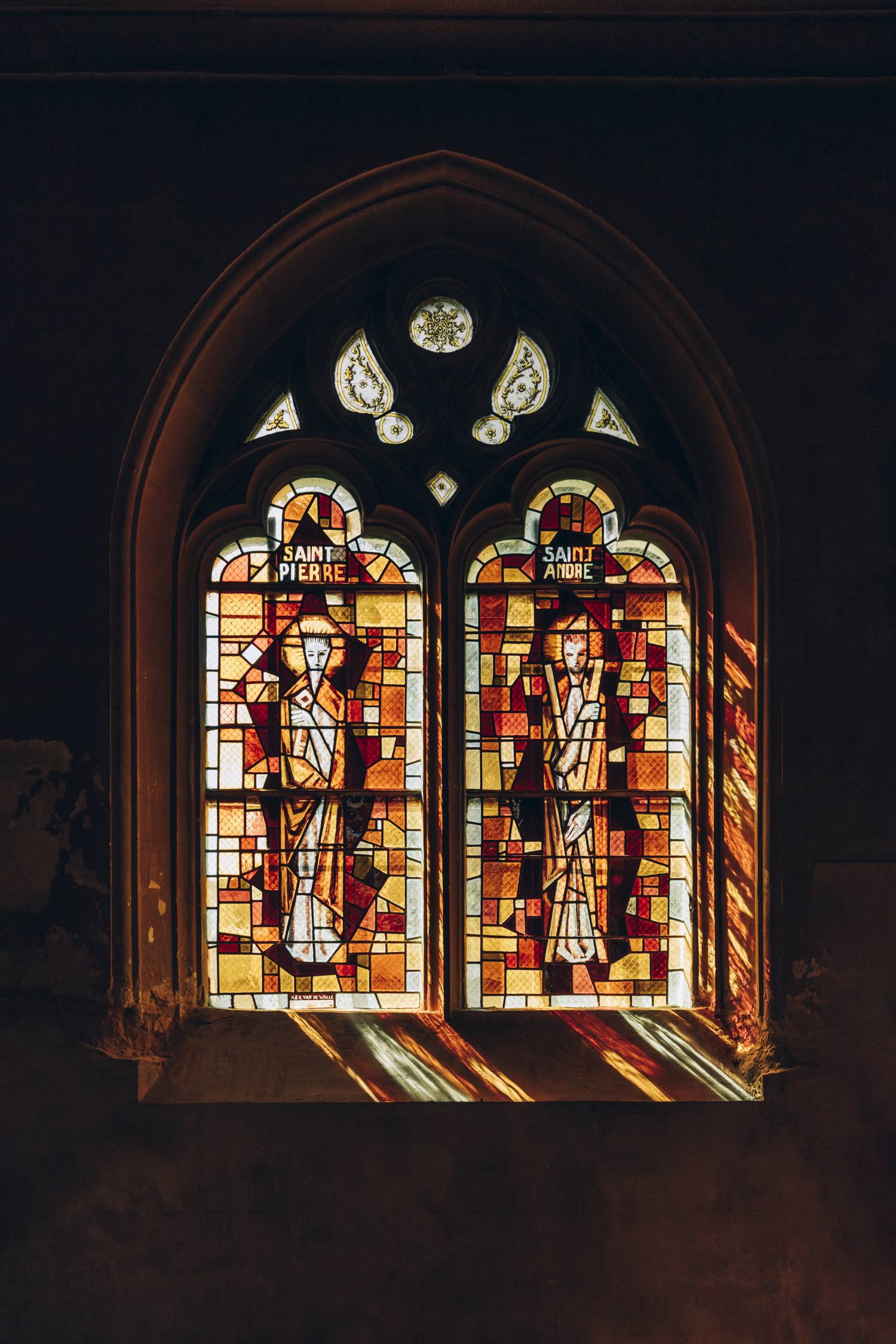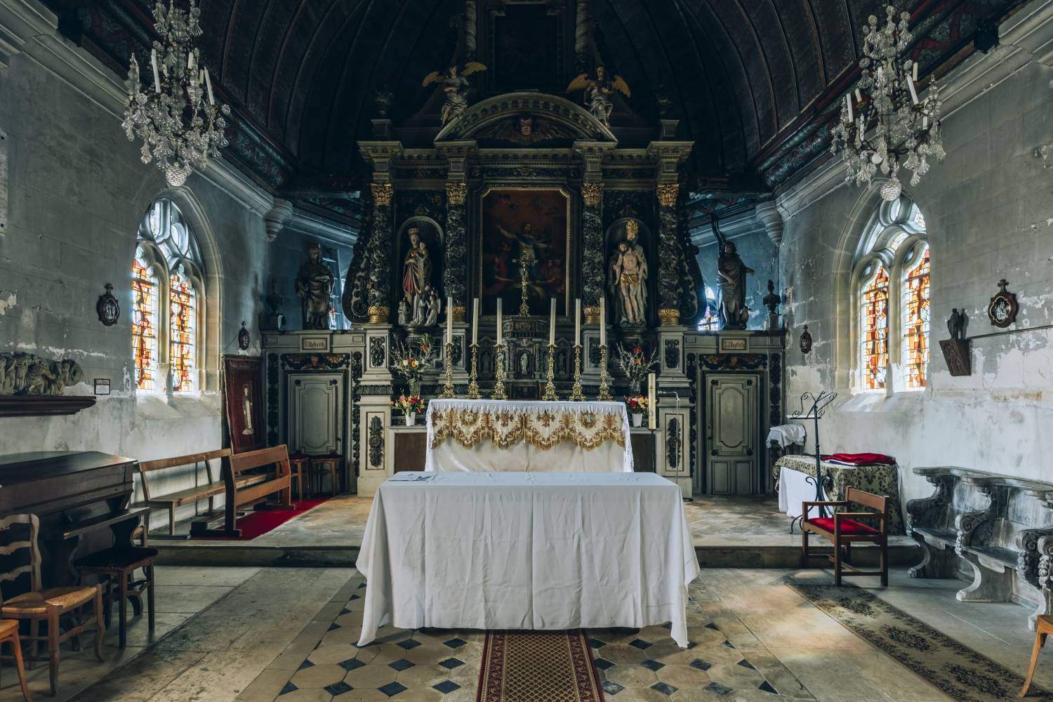 À l’intérieur, la charpente a reçu une voûte lambrissée de merrains, à décor polychrome, entièrement refaite par Charles Huet, menuisier à Bernay, en 1894-1895, en raison de la menace d’effondrement, comme le rappelle l’inscription sur les poutres. La polychromie a également été reprise à cette occasion, en particulier les corniches à bandes bleues, rouges et brunes avec des filets noirs et dorés.