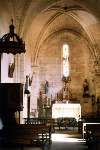 L’église de Dunet, située au cœur du bourg, est placée sous le vocable de saint Martial. C’était autrefois un prieuré bénédictin qui dépendait de l’abbaye Saint-Martial de Limoges. Son plan est très simple. Il comprend une nef de deux travée prolongée par un chœur à chevet plat. L’église est couverte par un voûtement en ogives dont les arcs retombent sur des colonnes à section carrée. Certaines sont terminées par des chapiteaux garnis de crochets de forme limousine. Les colonnes sont engagées dans des piliers qui reçoivent également les arcs doubleaux à section carrée, tandis que le profil des arcs se présente sous forme de tores agrémentés de gorges ou d’arêtes. Des traces de peintures murales subsistent sur les murs du chevet. La façade extérieure est très dépouillée. Le portail est bordé d’un boudin continu en arc brisé qui se déploie sous une archivolte coupée de plusieurs cavets. Des contreforts terminés par des glacis soutiennent les murs goutterots nord et sud ainsi que le chevet. Dans un angle, formé par le mur sud et un contrefort, est encastrée une tête d’évêque sculptée. Le clocher, originalement placé au dessus de la première travée de la nef, a été reconstruit le long du mur nord, au niveau de la première travée, peut-être à la suite d’un incendie. Chaque face est percée de deux ouvertures en plein cintre, légèrement en retrait sous l’intrados. Ce monument intéressant est inscrit à l’inventaire· supplémentaire des Monuments historiques. En 1991, une somme de 70 000 F a été versée par la Sauvegarde de l’Art Français pour permettre la restauration du clocher et de la nef.