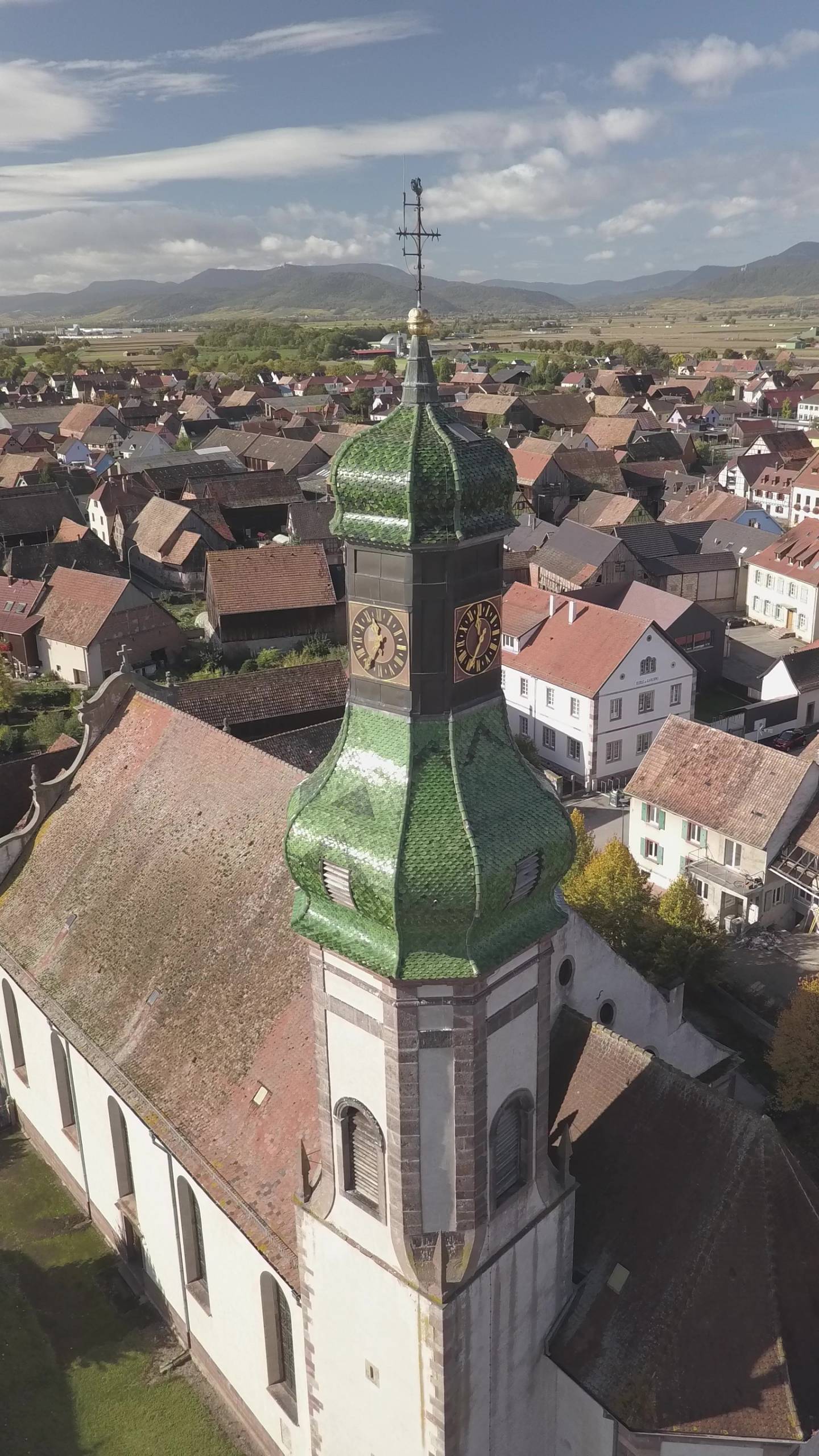 La tour-clocher, haute de 42 mètres, est la partie la plus ancienne de l’église (1753). Elle abrite une horloge de 1827 construite par J.B. Schwilgué.