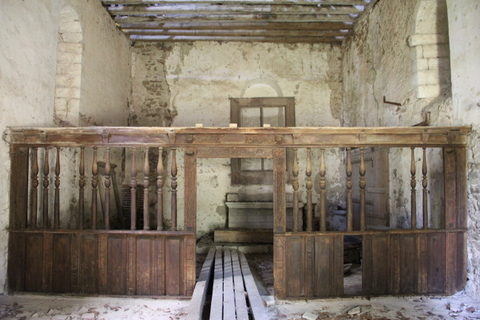 Par chance, l’élément le plus original du mobilier a été sauvegardé. Il s’agit d’un jubé en bois, probablement issu du même atelier de sculpture que celui qui exécuta la porte d’entrée en 1585. On y retrouve la même finesse ornementale et le même vocabulaire décoratif évoquant d’autres monuments de la seconde moitié du XVIe s. dans le Bourbonnais, comme le château de Chareil. Le tableau qui ornait le retable du maître-autel est actuellement conservé à l’intérieur du château.