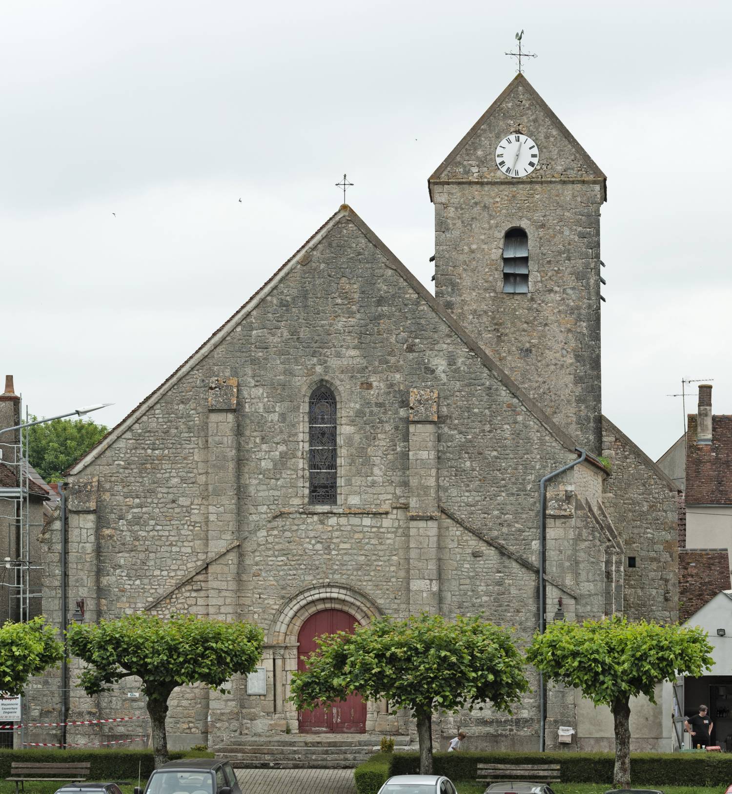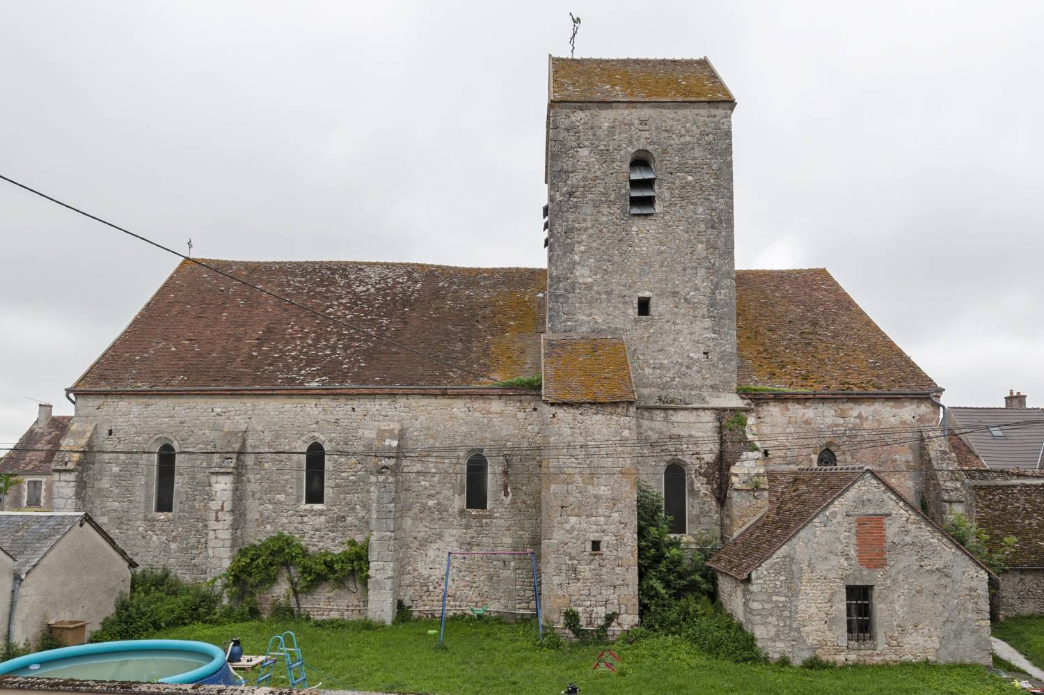 L’église est formée d’un vaisseau de cinq travées flanquées de deux collatéraux. Le clocher est engagé dans la deuxième travée du bas-côté sud. Il est couvert en bâtière. Sur la façade, un portail roman dont les chapiteaux sont sculptés de deux acrobates, d’une méduse et de deux personnages se tenant par la main a été repris de la première église du lieu. Des corbeaux subsistent d’un auvent disparu. Le chevet est percé d’un triplet de baie, d’inspiration cistercienne, la baie centrale plus importante a été refaite lors des travaux du XVIe siècle. Les murs nord et sud, engagés dans des constructions, sont presque invisibles. La sacristie a été ajoutée sur le côté sud.