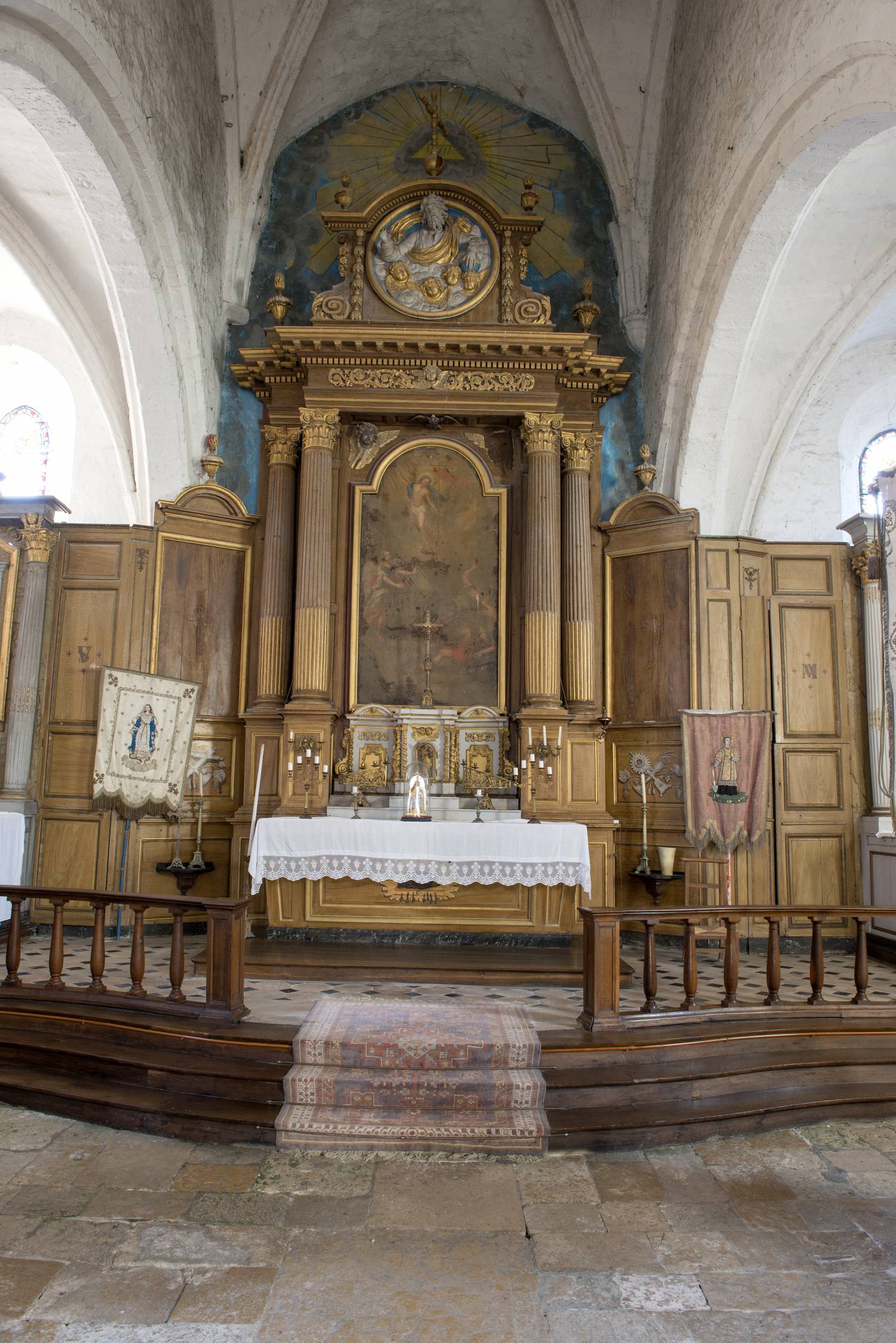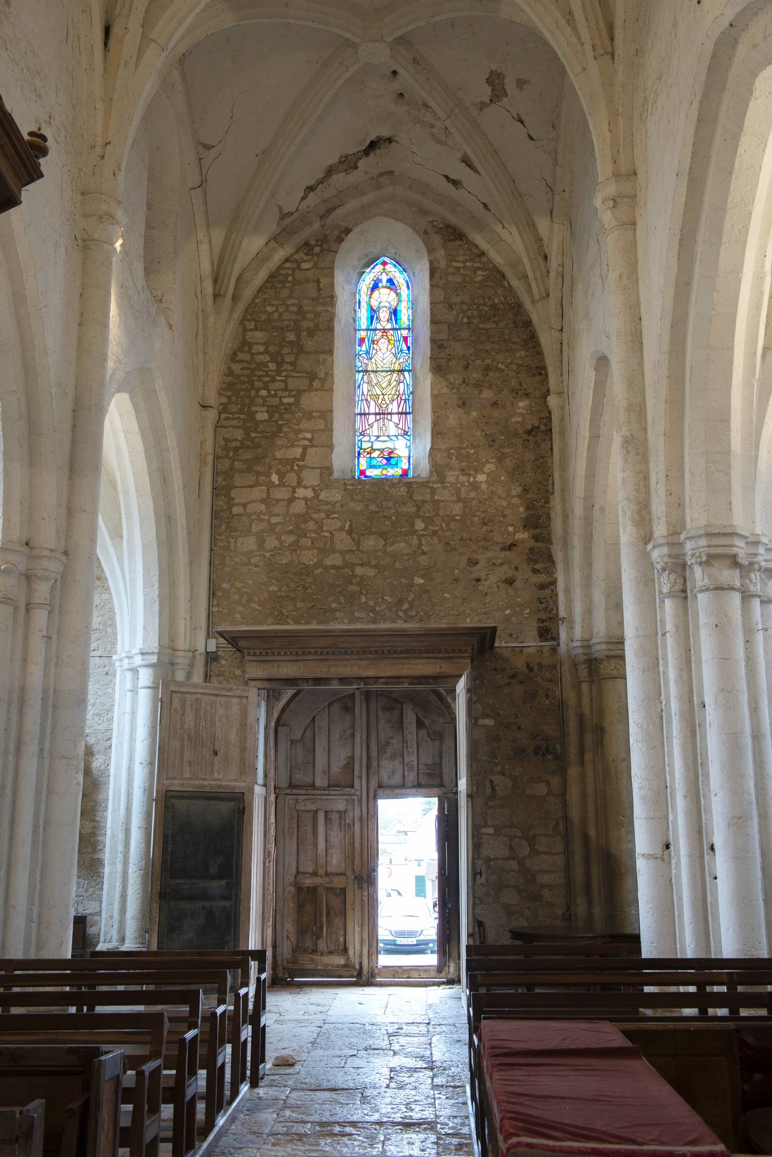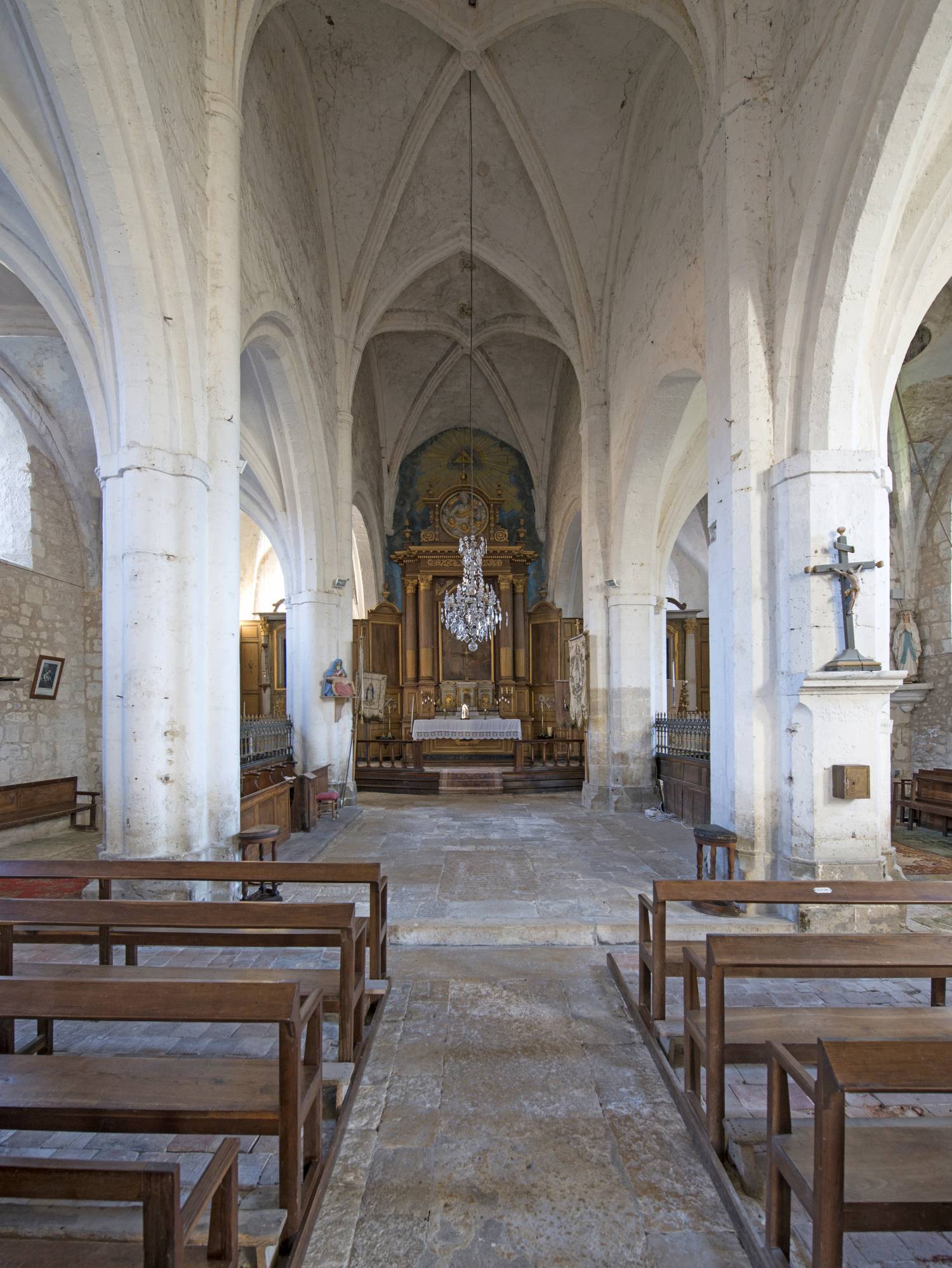 L’église est entièrement voûtée d’ogives en arc brisé. Au sommet de certaines travées, des fenêtres maçonnées se retrouvent dans le comble, ce qui laisse penser que la nef était éclairée de fenêtres hautes, et les bas-côtés avaient des toitures distinctes. Par la suite, sans doute au XVIIIe s. lorsque la charpente actuelle fut établie, les murs hauts de la nef ont été rabotés et tout a été couvert d’une seule et même toiture.