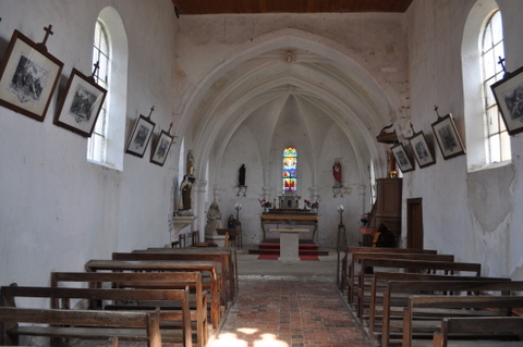L’édifice se compose d’une simple nef à plafond de bois, qui pourrait dater de la fin du XIIIe s., et d’un chœur, légèrement plus large que la nef qui le précède, à deux travées voûtées sur croisées d’ogives, la première rectangulaire, la seconde terminée par une abside à trois pans. Le chœur est antérieur à la nef et la forme des arcs d’ogives ainsi que les supports sont d’un XIIIe siècle classique. Sur l’arc d’entrée du chœur, deux culots sculptés de têtes d’homme reçoivent les ogives correspondantes.