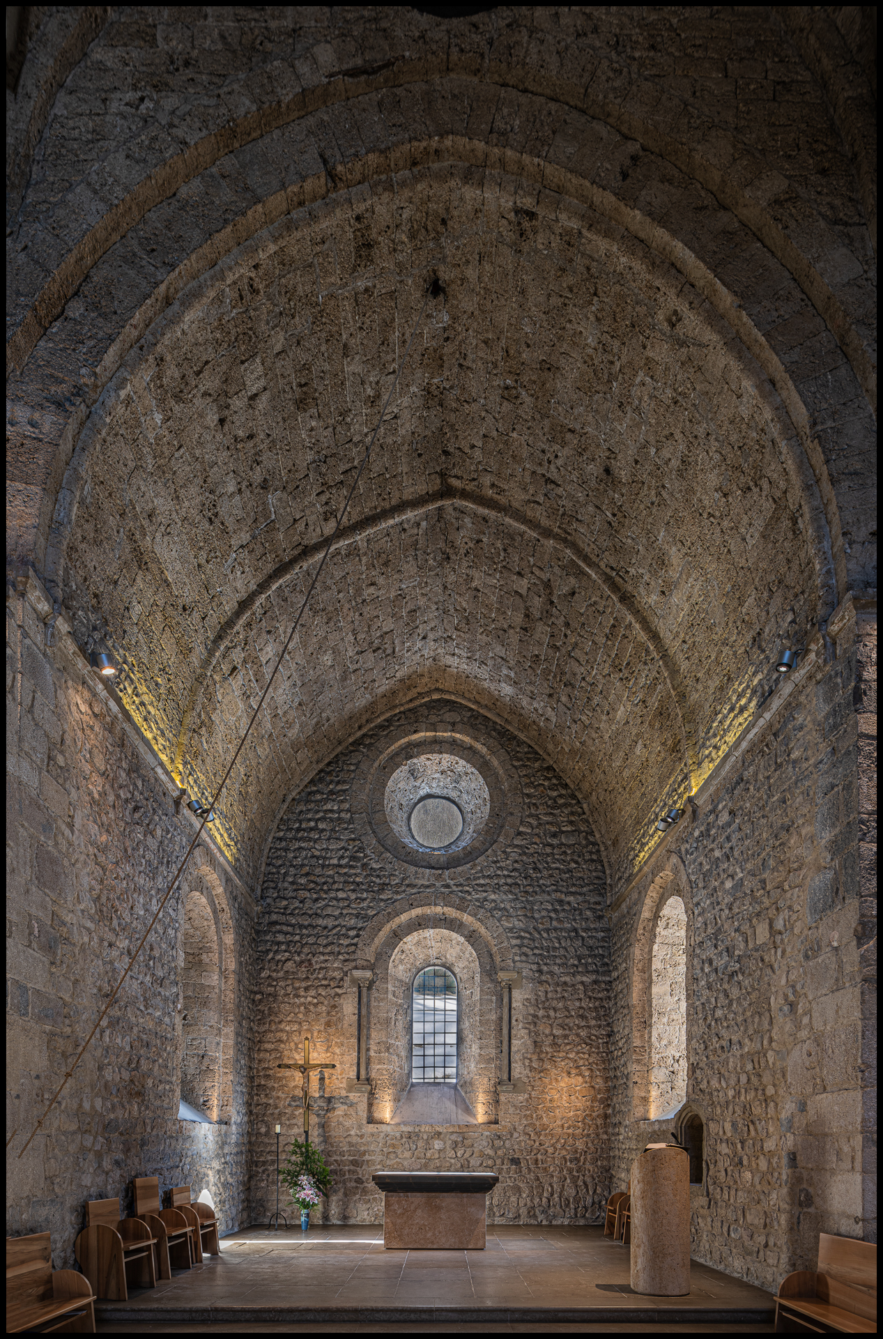 A la fin du XIIe siècle, Guigues de Revel, abbé général, engage des travaux dans l’église. Les voûtes sont reprises en belles pierres appareillées et des sculpteurs de Valence lui donnent un décor discret mais de bonne qualité : colonnettes autour de la fenêtre d’axe, clé de la croisée (agneau du tétramorphe) et sur les culots des colonnes engagées supportant la retombée des voûtes.
