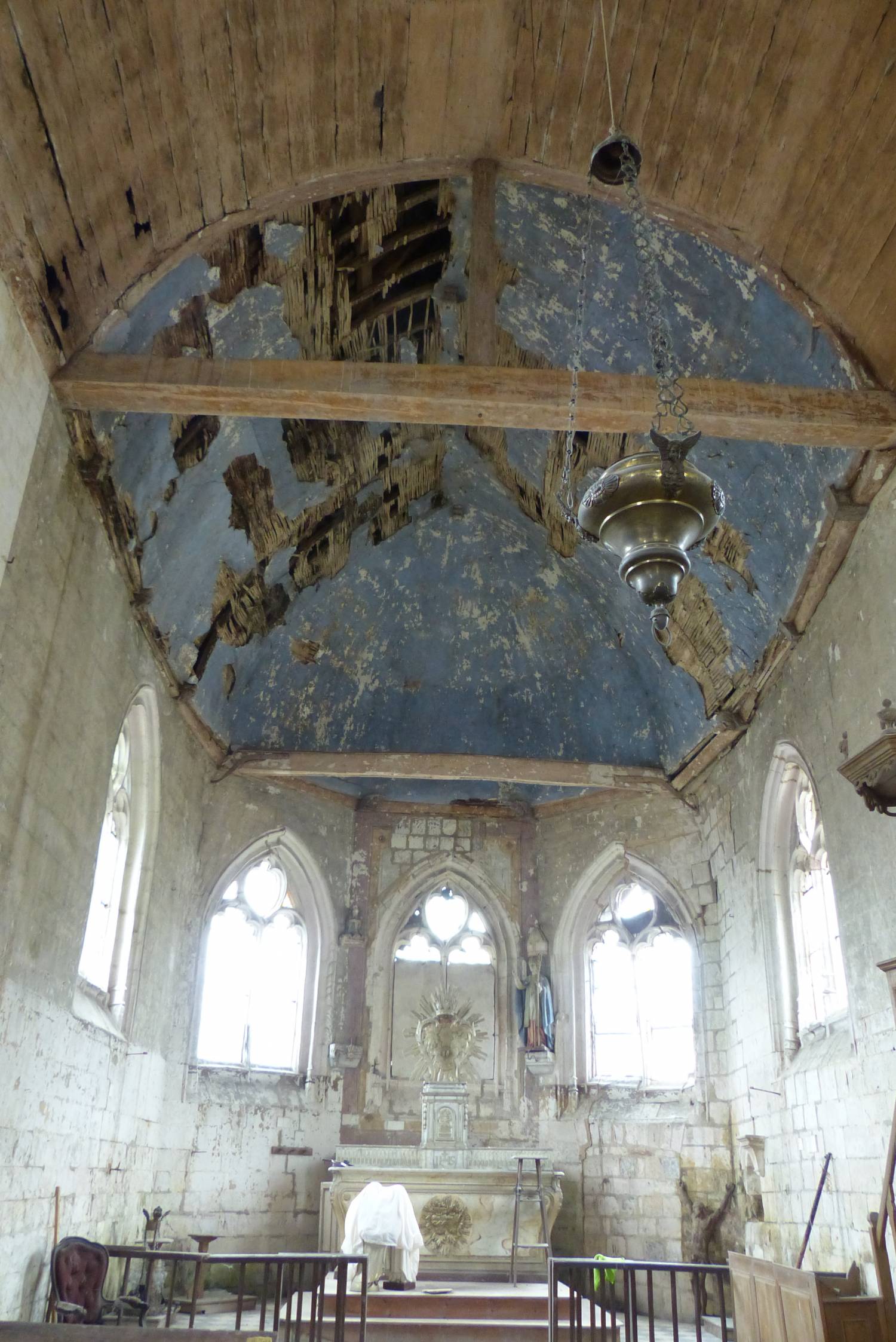 De taille modeste, l’église était originellement celle du château voisin. Elle a vraisemblablement été construite au XVIème siècle, succédant à une construction antérieure du XIVème siècle totalement disparue. Le choeur est de facture plus récente, fruit d’importants travaux au XVIIIème siècle.