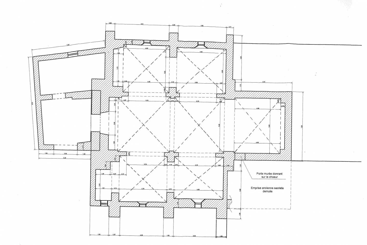 – plafonner à trois couches le plafond de la voûte de l’église,fournir les lambourdes qui manquent,faire une corniche et l’architrave avec du retour d’espace en espace