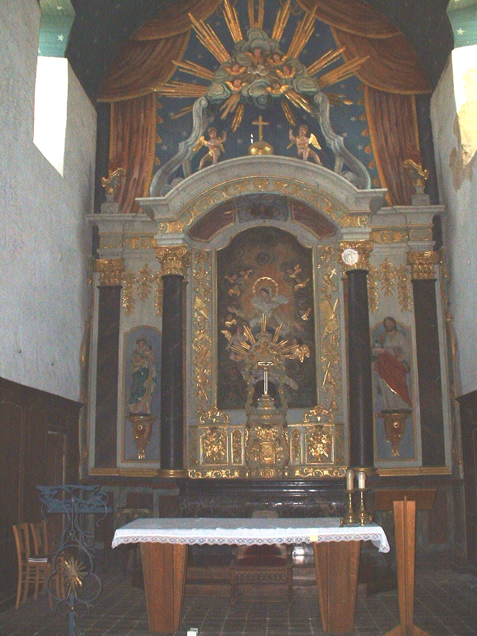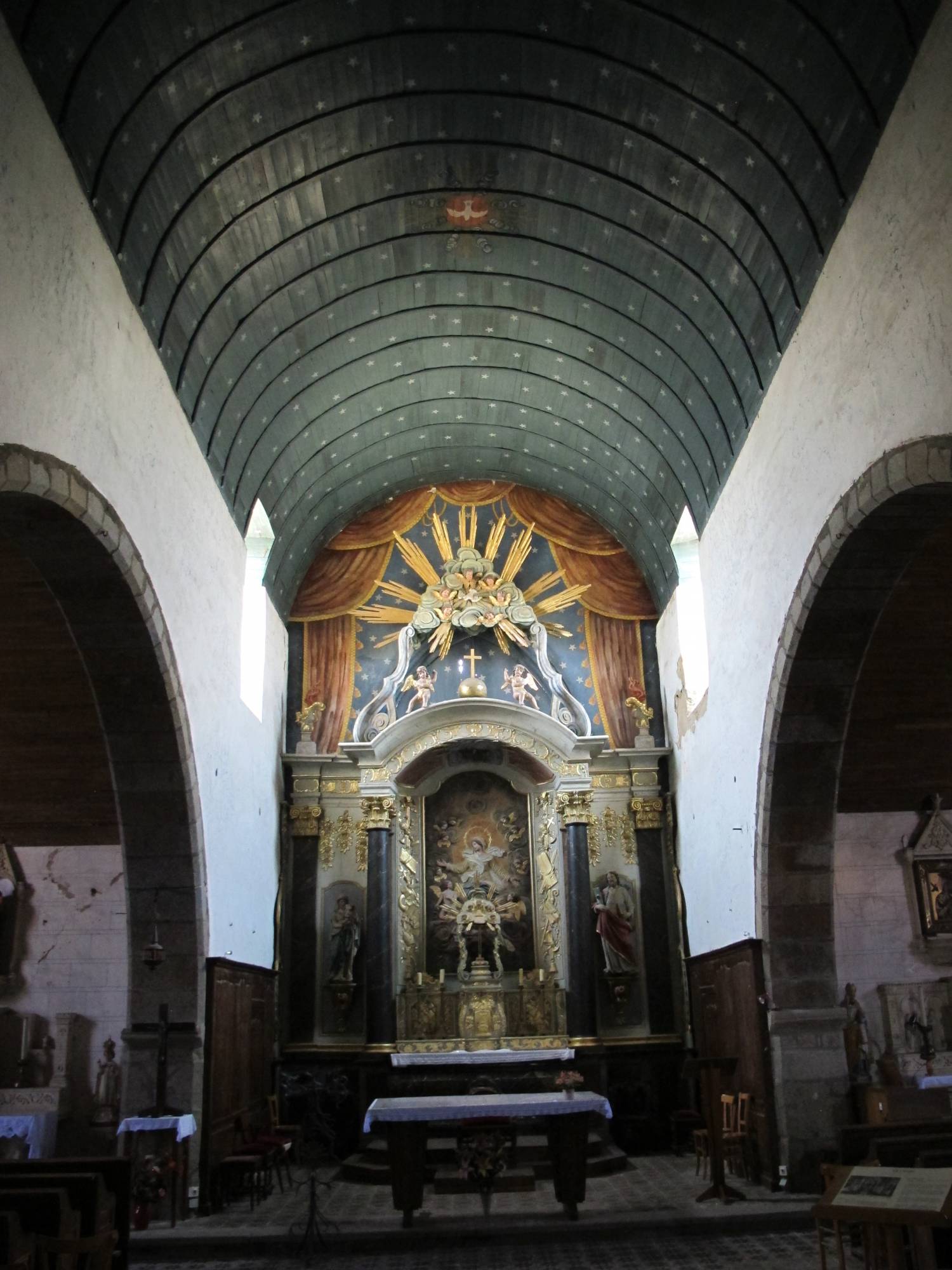Plusieurs campagnes d’aménagement liturgique ont transformé l’intérieur de l’édifice de la fin du XVe siècle : aménagement des retables des chapelles sud et nord en 1677, aménagement du retable du chœur ainsi que son décor d’accompagnement sur les élévations en 1778, aménagement des retables des chapelles latérales en 1879, réfection des enduits intérieurs et sols au début du XXe siècle.