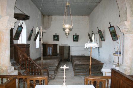 Le portail occidental, unique accès à l’édifice, donne sur la nef, dont le mur sud est percé de deux baies en arc plein cintre, le mur nord étant aveugle. Un plancher de bois, datant sans doute du XIXe siècle, masquait avant la restauration la charpente en berceau de la nef, élément le plus remarquable de l’église. Au Moyen Âge, elle était d’ailleurs lambrissée.