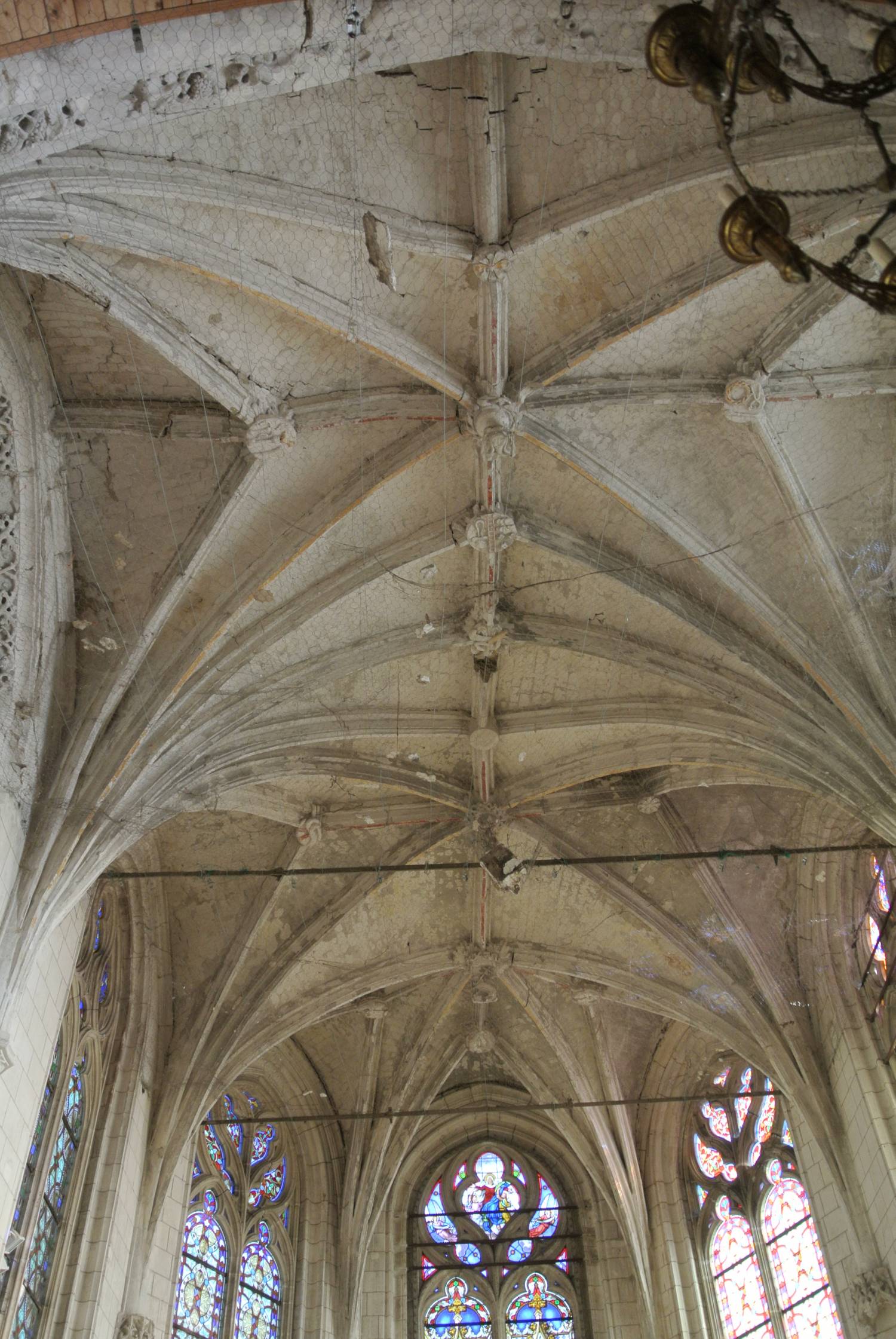 La fragilité des chœur et transept se fit jour dès le XVIIIème siècle. Le pignon du bras sud du transept fut restauré en 1777 alors que le pignon nord fut, lui-aussi, restauré après son effondrement en 1886. Ces derniers éléments comme certaines portions des contreforts furent restaurées en briques afin de réaliser des travaux plus économiques.